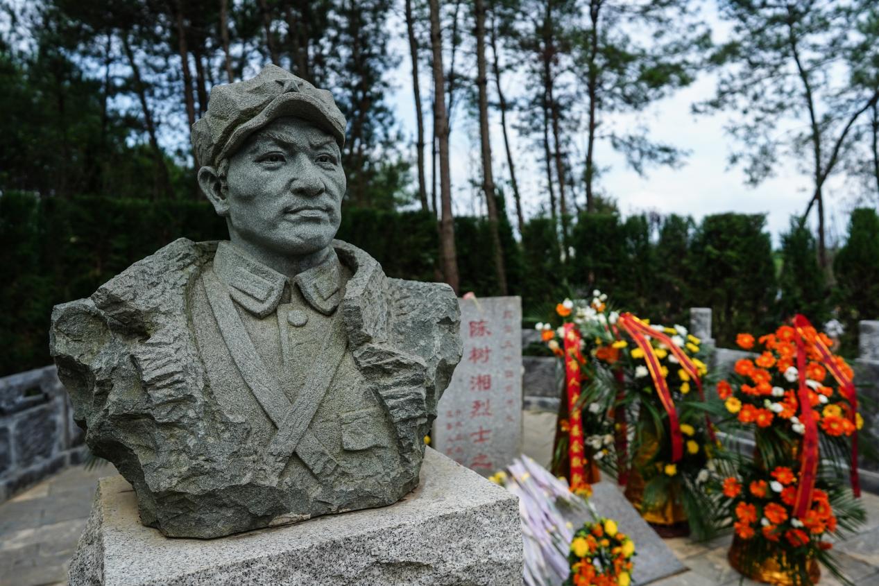 習近平總書記曾在多個場合提到紅三十四師師長陳樹湘「斷腸明志」的壯烈故事。湘江之戰,年僅29歲的陳樹湘奉命率部擔負全軍後衛,與十幾倍於自己的敵人殊死激戰四天,在完成掩護紅軍主力和中央機關過江任務後,渡江道路已被全部切斷。突圍時,陳樹湘腹部中彈,在昏迷中被俘。醒來後,陳樹湘乘敵不備,用手從腹部傷口處掏出腸子,用力絞斷,實現了他「為蘇維埃新中國流盡最後一滴血」的誓言。紅三十四師也最終全軍覆沒。