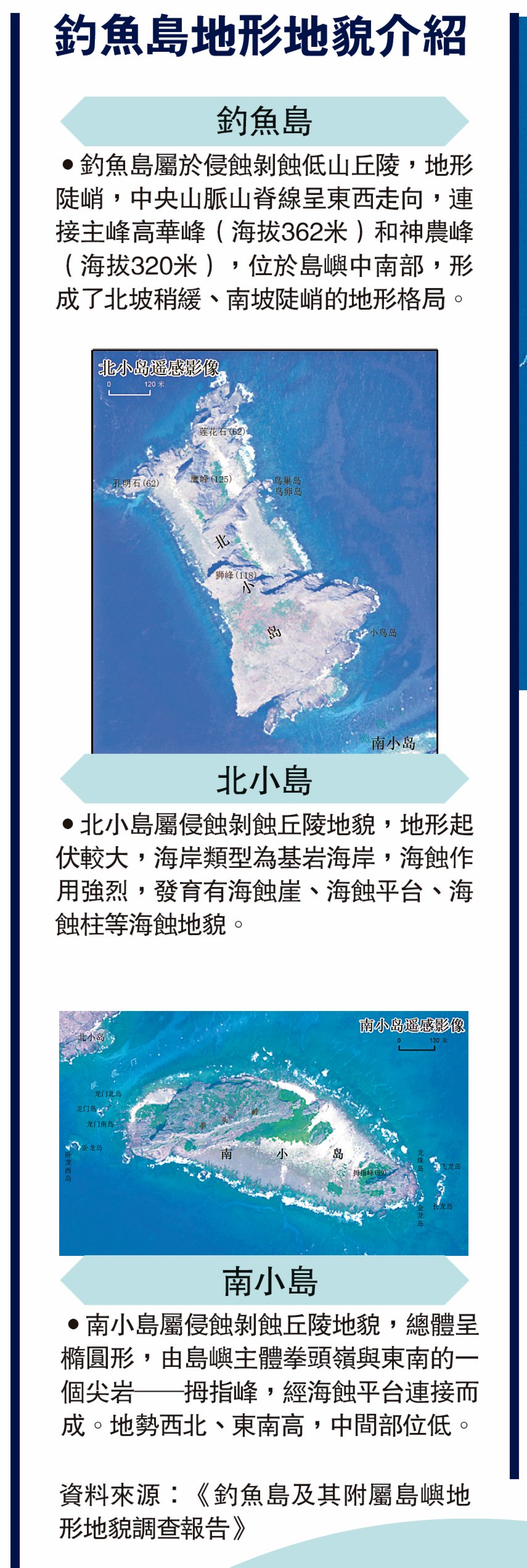 (大公報記者 張寶峰)26日,自然資源部在官網公布《釣魚島及其附屬島嶼地形地貌調查報告》(以下簡稱報告)。報告採用最新高分辨率衛星遙感等調查方式,開展島陸地形地貌與淺海地形地貌兩部分調查,覆蓋釣魚島及其附屬島嶼的主要海島。多位國際關係專家26日對大公報說,自然資源部發布這份報告,說明中國在釣魚島及其附屬島嶼在實施有效的管轄和管理,反映出釣魚島及其附屬島嶼是中國不可分割的領土,同時也向日本和有關方面展示了我國堅決捍衛對釣魚島及其附屬島嶼主權及領土完整的堅定決心。