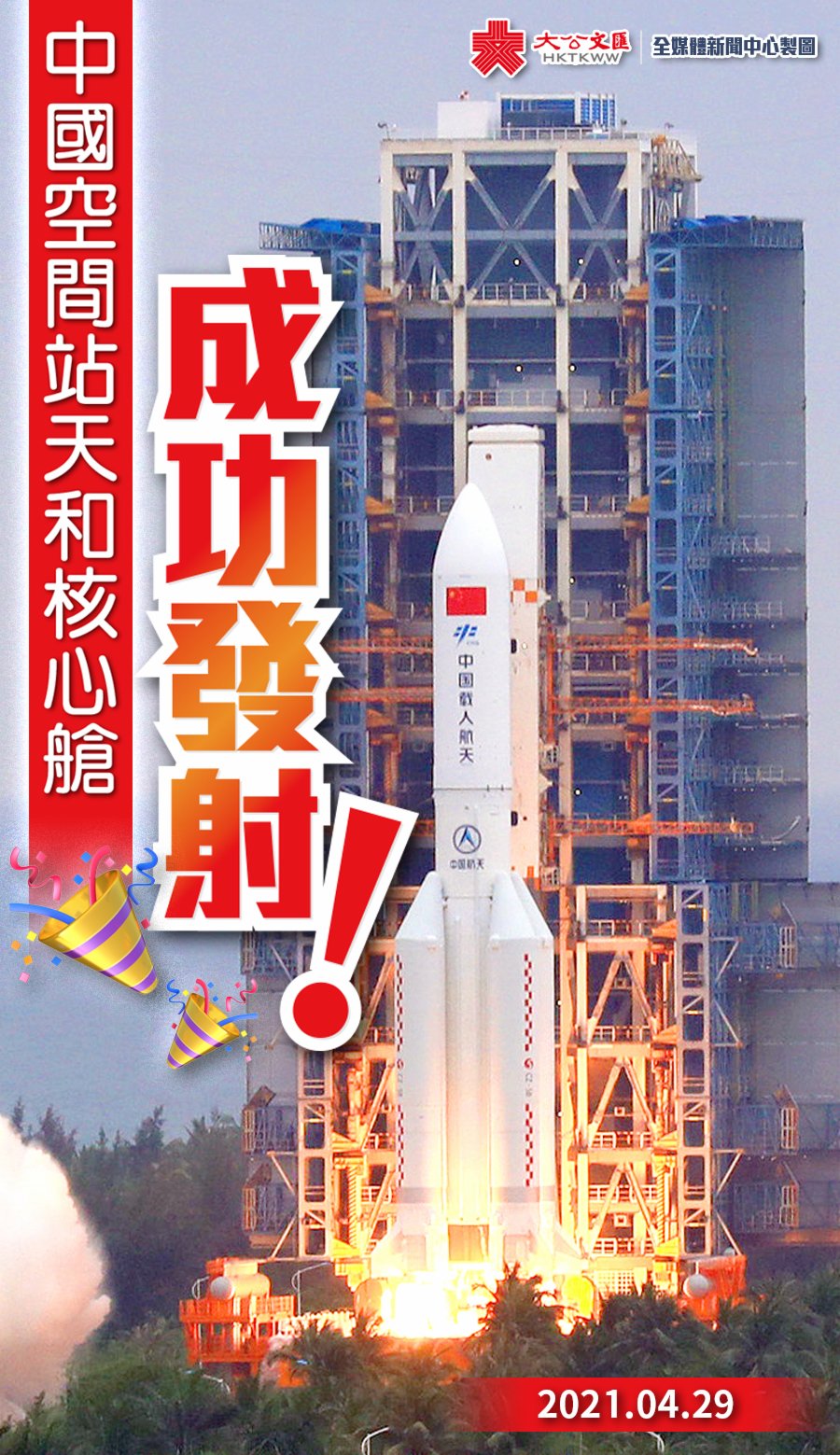 (大公文匯網 記者 劉凝哲)剛剛,長征五號B遙二運載火箭在中國文昌航天發射場點火升空,將載人航天工程空間站天和核心艙精準送入預定軌道,發射任務取得圓滿成功,中國載人航天工程空間站建設首戰告捷,標誌着中國載人航天工程空間站建設正式拉開大幕。