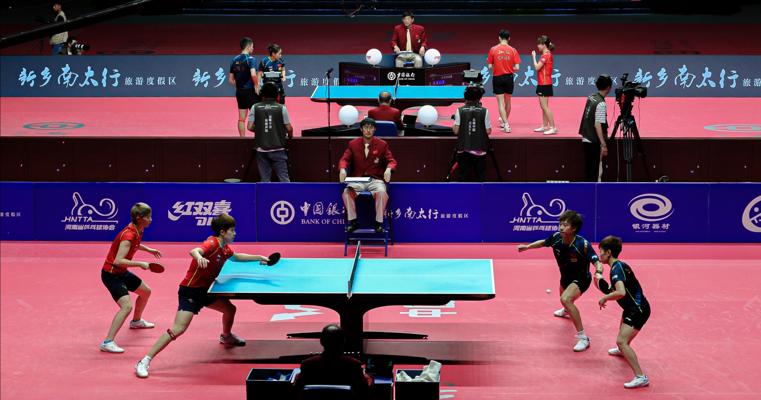 另外一場混雙1/4決賽,王楚欽/王曼昱的表現同樣乏善可陳,他倆在面對模仿日本水谷隼/伊藤美誠組合的林高遠/張瑞時也沒能把握住機會,與「昕雯聯播」組合一樣以2:4落敗,無緣混雙半決賽,也爆出一大冷門。另外兩場混雙1/4決賽,梁靖崑/孫穎莎4:0橫掃朱霖峰/朱雨玲;而之前爆冷4:0橫掃樊振東/錢天一的「雙削」組合——馬特/劉斐則再次發威,又以4:0「零封」徐晨皓/王藝迪強勢殺入混雙四強。混雙半決賽具體對陣為周雨/陳幸同VS林高遠/張瑞、梁靖崑/孫穎莎VS馬特/劉斐,究竟哪兩對組合能夠殺入本次比賽混雙決賽,讓我們一起拭目以待。