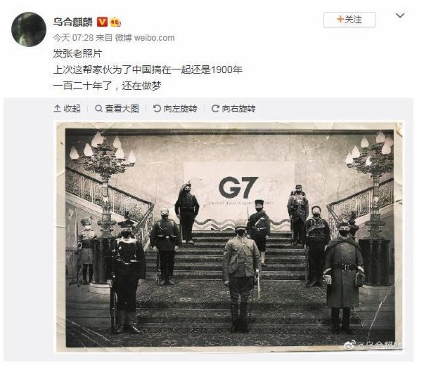 這分明就是在諷刺,前幾天在英國召開的七國集團(G7)外長會嘛!