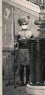 細節二:「老照片」中的人跟八國聯軍的打扮一樣,但多了個口罩。