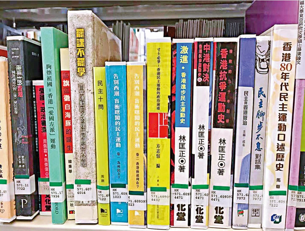 不過在某層入口處,記者卻見到數本「獨書」赫然在列,包括港大學生會學苑《香港民族論》,前立法會攬炒派議員陳淑莊的《敏感地帶》,黃媒人作家林匡正的《中港對決》、《香港抗爭運動史Ⅱ- 挫敗的三十年剖析》、《激進·香港進步民主運動史》、何俊仁的《我向霸權宣戰》以及余杰所著《卑賤的中國人》,合共七本。