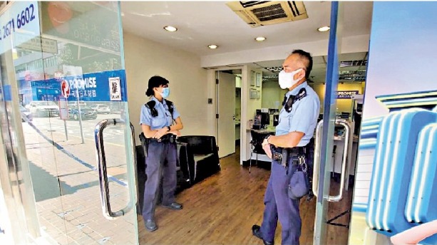 (大公報記者 黃浩輝)疫情仍未斷尾,本港經濟仍未復甦,劫案頻生,兩名「笨賊」昨日手持一支水槍,闖入上水一間財務公司,向女職員聲稱借款2億元,惟女職員見對方手持水槍未有理會。兩男子其後離去,但其中一名男子不忿折返現場,情緒激動並跳入櫃枱內,手持一支原子筆揚言要傷害該名女職員,多名男職員見狀合力將其制服。警方衝鋒隊趕抵,將涉案男子拘捕。警方完成現場搜證後,涉事財務公司繼續營業。