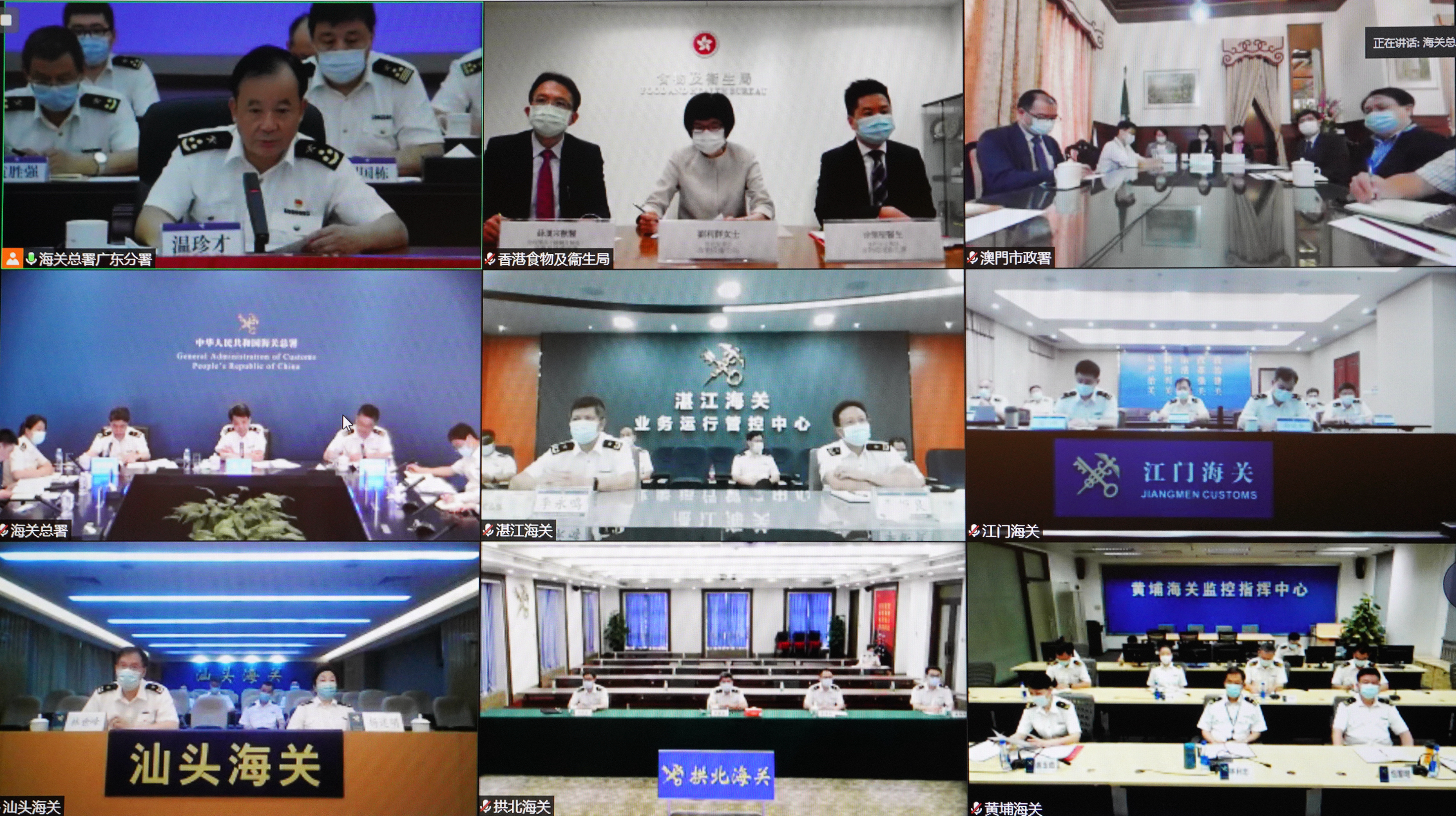 海關總署廣東分署黨委副書記、副主任溫珍才,香港食物及衞生局常任秘書長劉利群、澳門市政管理委員會代主席柯嵐、澳門衞生局副局長鄭成業出席會議。海關總署有關司局、廣東省內7個直屬海關有關負責人以視頻連線方式參加會議。