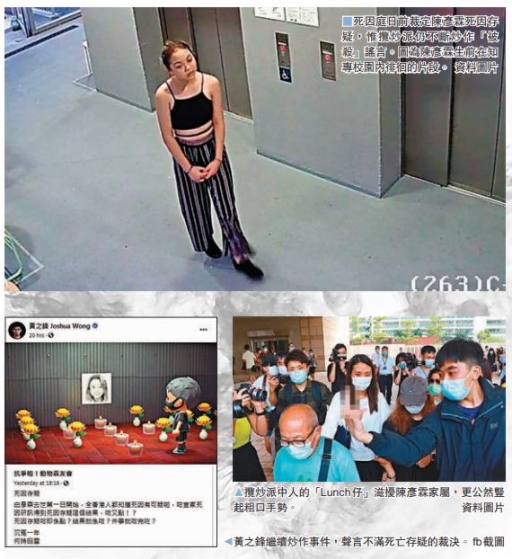 於是一些問題的答案再清楚不過——陳彥霖也好,周梓樂也好,他們的死因究竟如何對暴徒來說或許並不重要,暴徒從一開始也從未有絲毫興趣討論法律之嚴謹、司法之公正,他們需要的不過是「打扮」一位逝者,將其塑造成一個受當局迫害而死的「無辜者」或「英雄」,然後便可藉此事發難於當局,繼而「名正言順」地將自身置於「正義反抗者」的身份上,為自己的顛覆和破壞行為虛構某種「合法性」,至於事件本身的真相是什麼,他們從不關心。