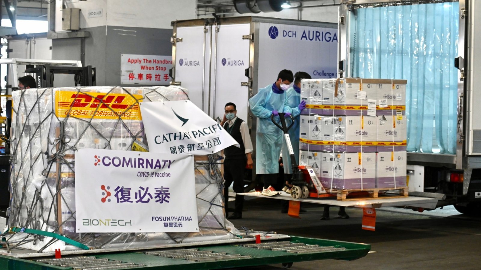 大公文匯全媒體報道,衞生署公布,復星醫藥已於今日(14日)將BioNTech製造並於德國另一廠房(Baxter)封裝的最新一批約74萬劑復必泰疫苗付運抵港。