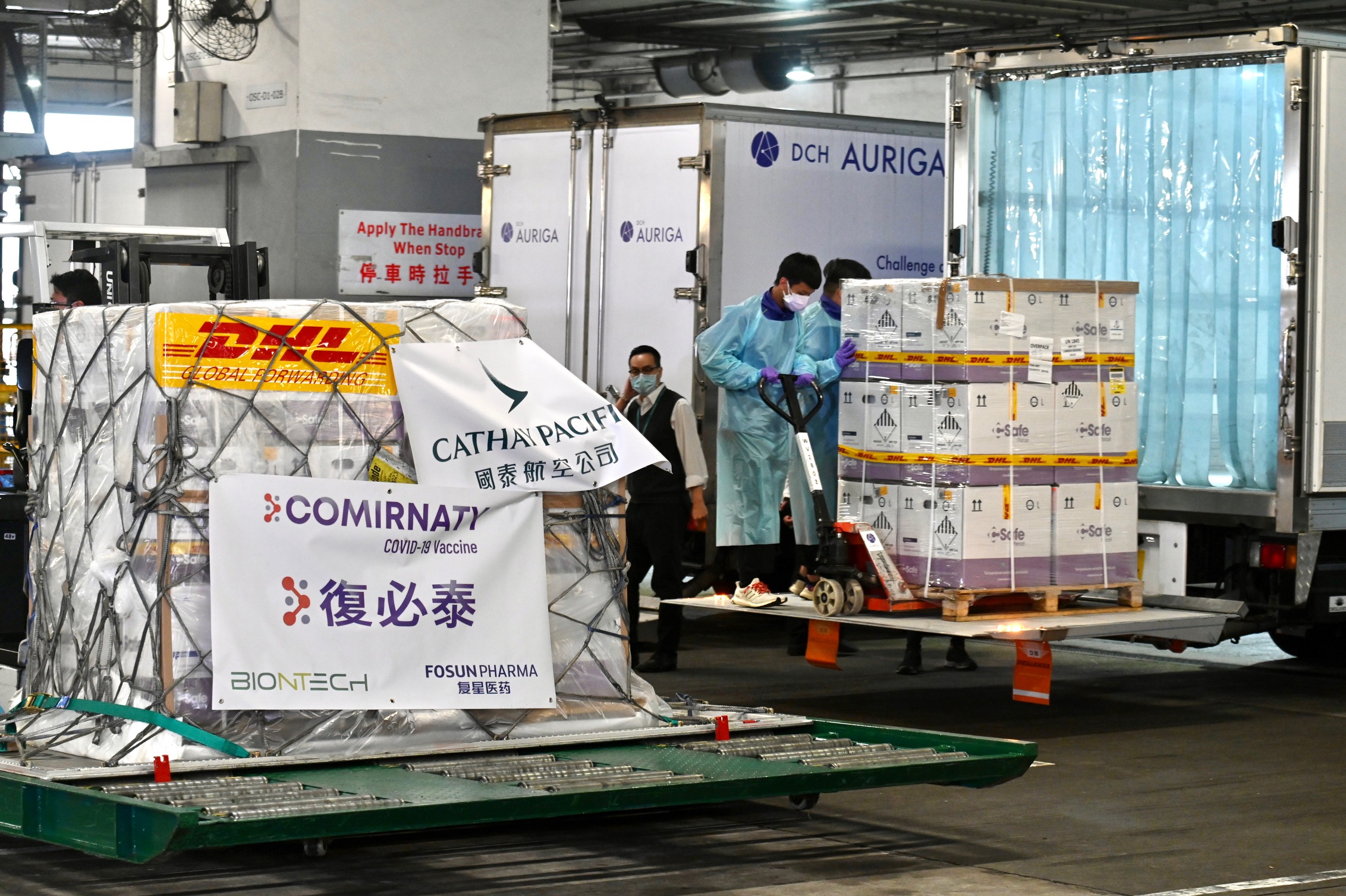 新一批次復必泰疫苗今日抵港後,工作人員隨即按既定程序,對有關疫苗進行檢查及核對,以確保疫苗符合產品規格及相關的冷鏈運輸標準。政府亦會把疫苗存放在經驗證的超低溫冷藏櫃,按藥廠指定的溫度妥善保存。