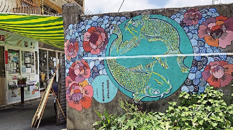 由西鐵錦上路站B出口,往盈匯坊方向步行約10分鐘,經過紅磚屋,進入祠堂村,「和融天空」系列壁畫映入眼簾。11幅作品是由香港大學邀請自閉兒童,與錦田壁畫村義工團及本地社區人士共同繪畫而成。郭老師介紹,這些壁畫以龍鳳、錦鯉、馬等動物做主角,通過幾何圖案手法表達吉祥意念,「畫中的動物雙雙對對,蘊含喜慶的傳統習俗,還有一幅是BB花簇,寓意添丁。」