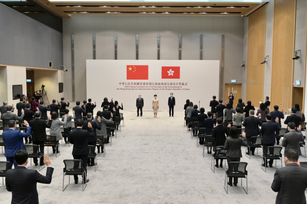 近日,香港特別行政區政府依據有關法律規定,完成了公務員宣誓或簽署聲明擁護基本法、效忠特別行政區的安排,香港特別行政區立法會也審議通過了《2021年公職(參選及任職)(雜項修訂)條例草案》。5月16日,國務院港澳事務辦公室發言人發表談話表示,這標誌着涵蓋行政長官、政治委任官員和公務員、行政會議成員、立法會議員、各級法院法官和其他司法人員、區議員在內的較為系統的香港特別行政區公職人員宣誓效忠制度已經建立起來並付諸實施,是香港特別行政區政權建設的重要里程碑。