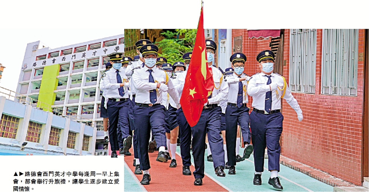 (大公報記者 王麗、賀仁)愛國必須從學校教育做起。位於元朗的路德會西門英才中學每周都會舉行一次升旗禮,校長簡加言告訴大公報記者:「不敢說每周舉行升旗禮就能讓學生建立愛國情感,但潛移默化是教育的重要方法」。該校早在六年前構思編寫有關國民教育的校本教材,將國民教育融入生命教育,引導學生認識生命的成長與群體、社區的關係,包括香港和祖國血脈相連的關係。
