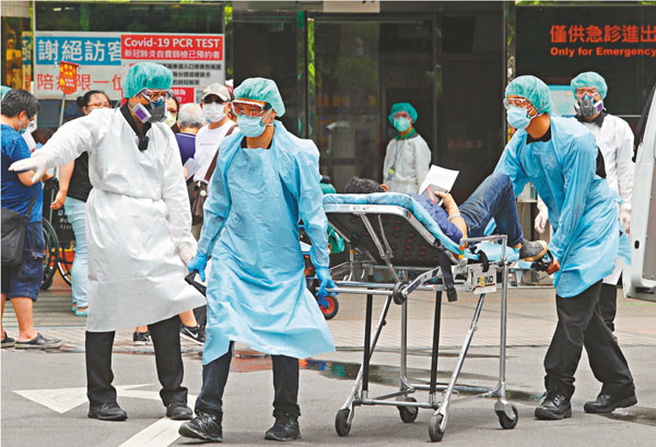 台當局衞福部門18日表示,最新統計顯示,台北、新北、基隆與宜蘭四地醫院負壓隔離病房僅剩47間,專責病房僅剩28間,醫療量能吃緊。台灣大學醫院當日呼籲,輕症或無症狀患者請到社區採檢站,勿直衝急診,致使急診室堵塞,耗費醫療資源。台北市衞生局證實,目前台北市病房均已住滿,無法將患者全部安排進入病房,只能要求其在家自我隔離等候通知。
