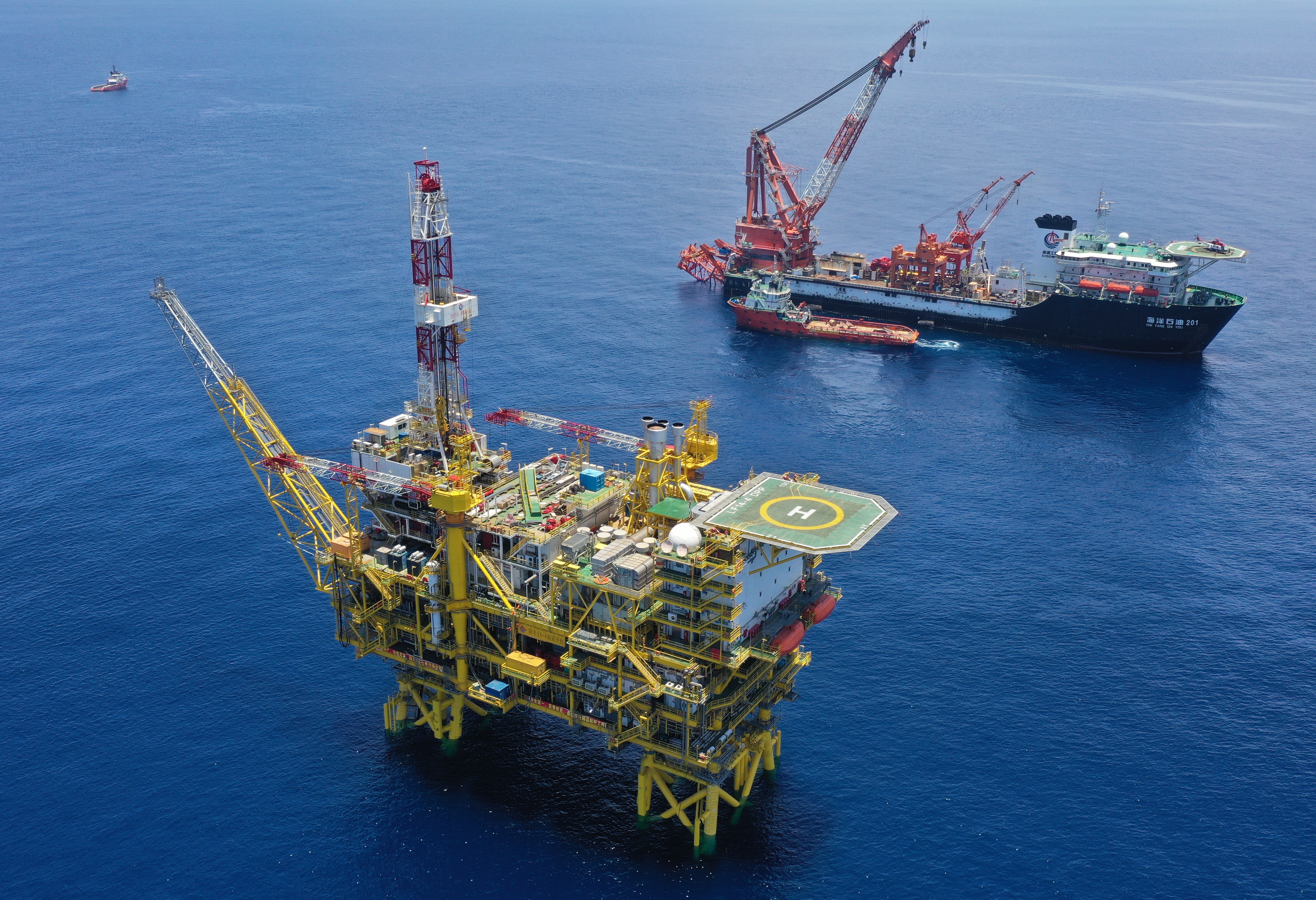 陸豐14-4中心平台由上部組塊和導管架兩部分組成,矗立在145米水深的大海上,總高度達218米,相當於70層樓高,總重量近3萬噸,超過3個埃菲爾鐵塔的重量。該平台投產後,將主要開發陸豐14-4和陸豐14-8兩個油田,這是中國南海首次規模化開發深層低滲油田,開發難度極大。中國海油創新思路,推動億噸級陸豐油田群的聯合開發,並採用南海首個規模化人工註水開發方案,可顯著改善油田開發效果。