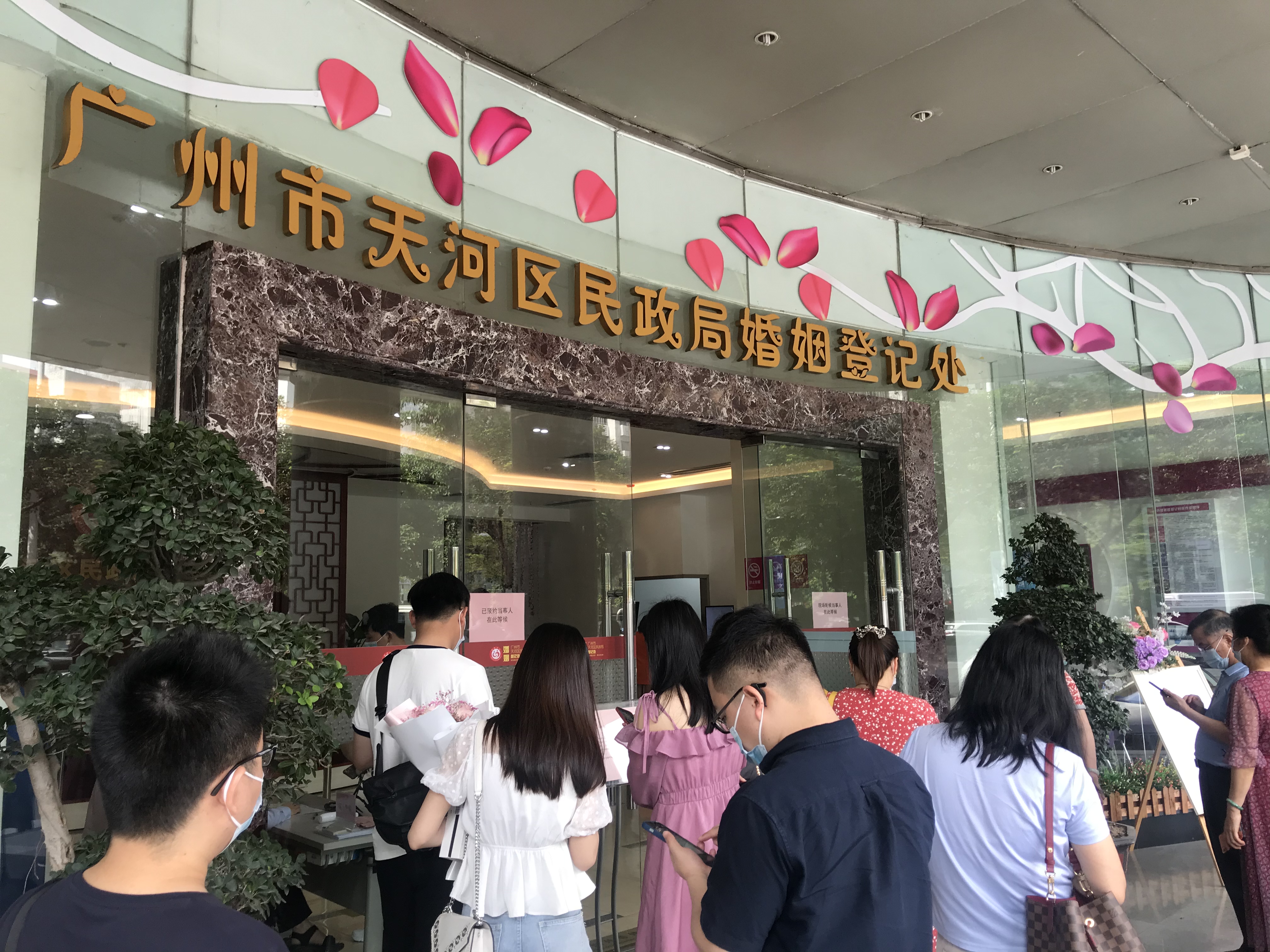 記者於19日登錄廣東省婚姻登記網看到,5月20日當天,廣州全市11個區婚姻登記中心都已經預約滿額。由於登記結婚的人太多,甚至擠佔了離婚人士的資源,有預約離婚的市民表示當天無法預約。