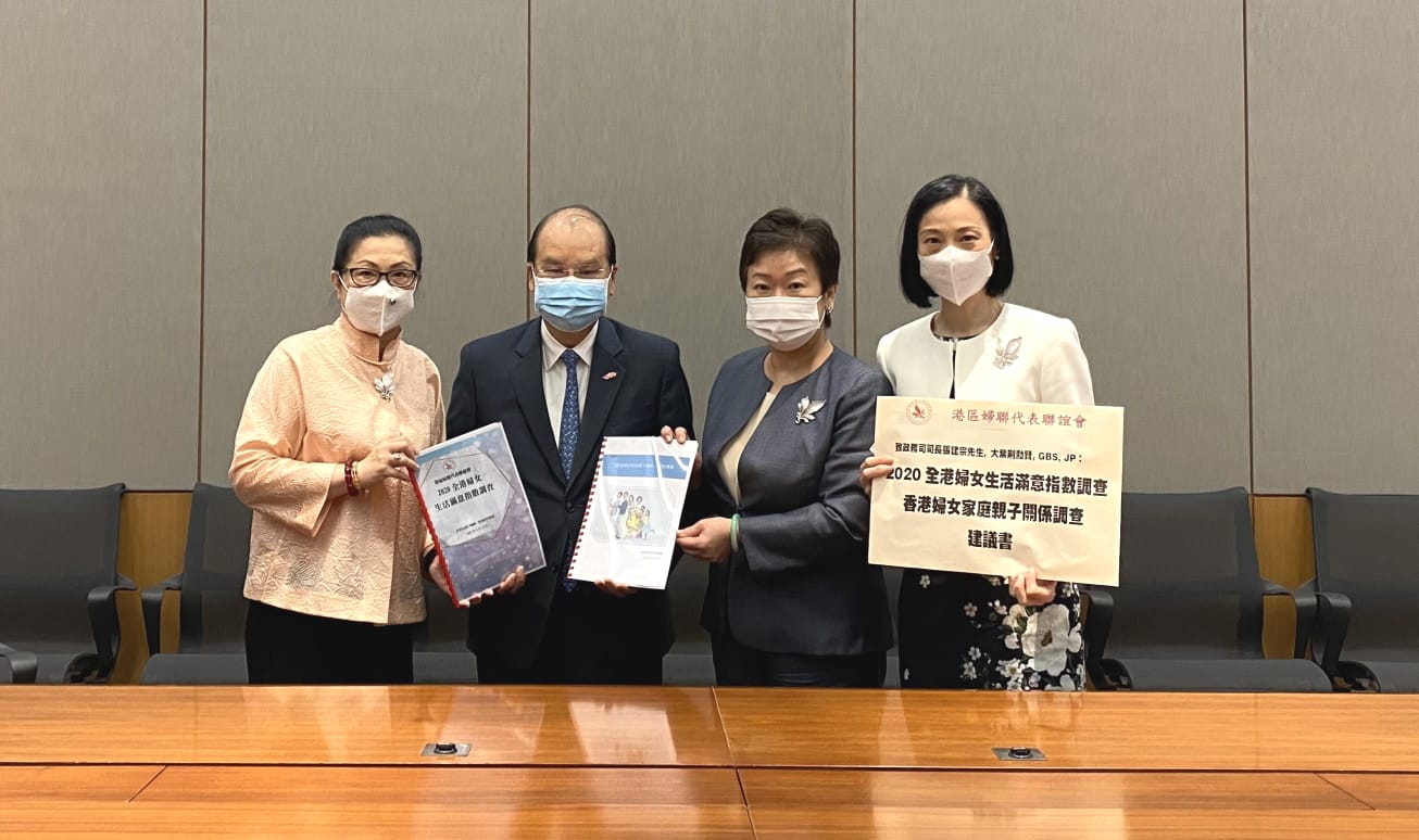 根據「2020全港婦女生活滿意指數調查」和「香港婦女家庭親子關係調查」的結果,港區婦聯代表聯誼會進行了政策建議。聯誼會新任會長陳曼琪表示,儘管經過2019年「修例風波」和2020年新冠肺炎疫情的影響,本港婦女最滿意的三個領域是「家庭融洽」(6.72分)、「社交生活與人際關係」(6.50分)以及「子女成長」(6.19分),這反映香港市民在家庭領域仍然保存了優良的中國傳統文化,比較重視家庭倫理,也說明家庭是凝聚團結社會,維持社會穩定的重要力量,建議政府應珍惜家庭。她表示,雖然「子女成長」得分位列前三,然而整體評分比2018年下跌了0.55,反映出婦女對子女成長的憂慮,值得政府給予重視。