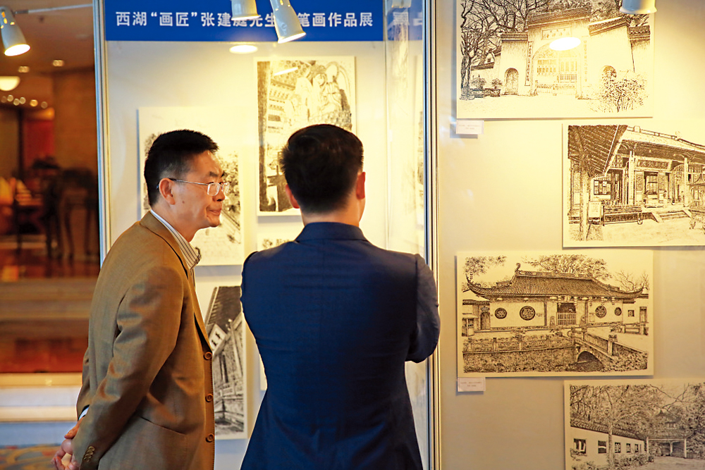 (大公報記者 茅建興)張建庭參與過的一些景觀,他覺得很優美,就用鋼筆畫的方式記錄下來,至今已創作了近兩百幅作品。曾任二十國集團杭州峰會藝術指導委員會主任的他,工作之餘出版了《東南佛國風景》、《雪畫西湖》、《西湖亭緣》、《西湖名築》等多種鋼筆畫冊。他以西湖為主題的鋼筆畫作品已在法國巴黎聯合國教科文組織總部,阿根廷、迪拜、波蘭、墨西哥,以及香港、澳門等地展出。