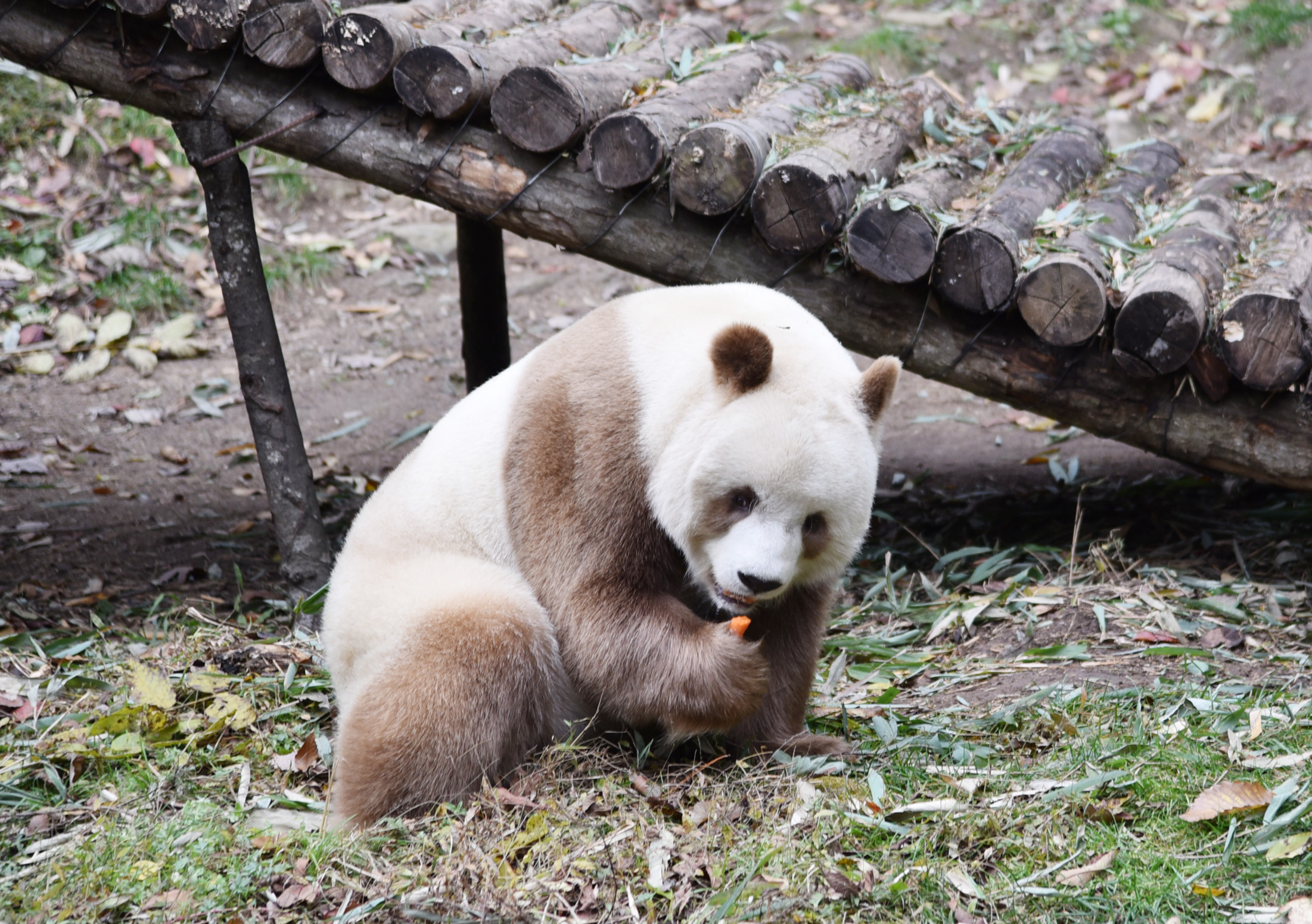 1985年3月,陝西佛坪縣岳壩鄉農民呂國友在秦嶺大古坪保護站轄區內,發現一隻棕白相間的熊貓,棕色大熊貓從此走進人們的視野。此後,棕色大熊貓的身影又多次在秦嶺地區閃現。而全球唯一的一隻圈養棕色大熊貓「七仔」,目前就生活在陝西省林業科學院秦嶺大熊貓繁育研究中心。