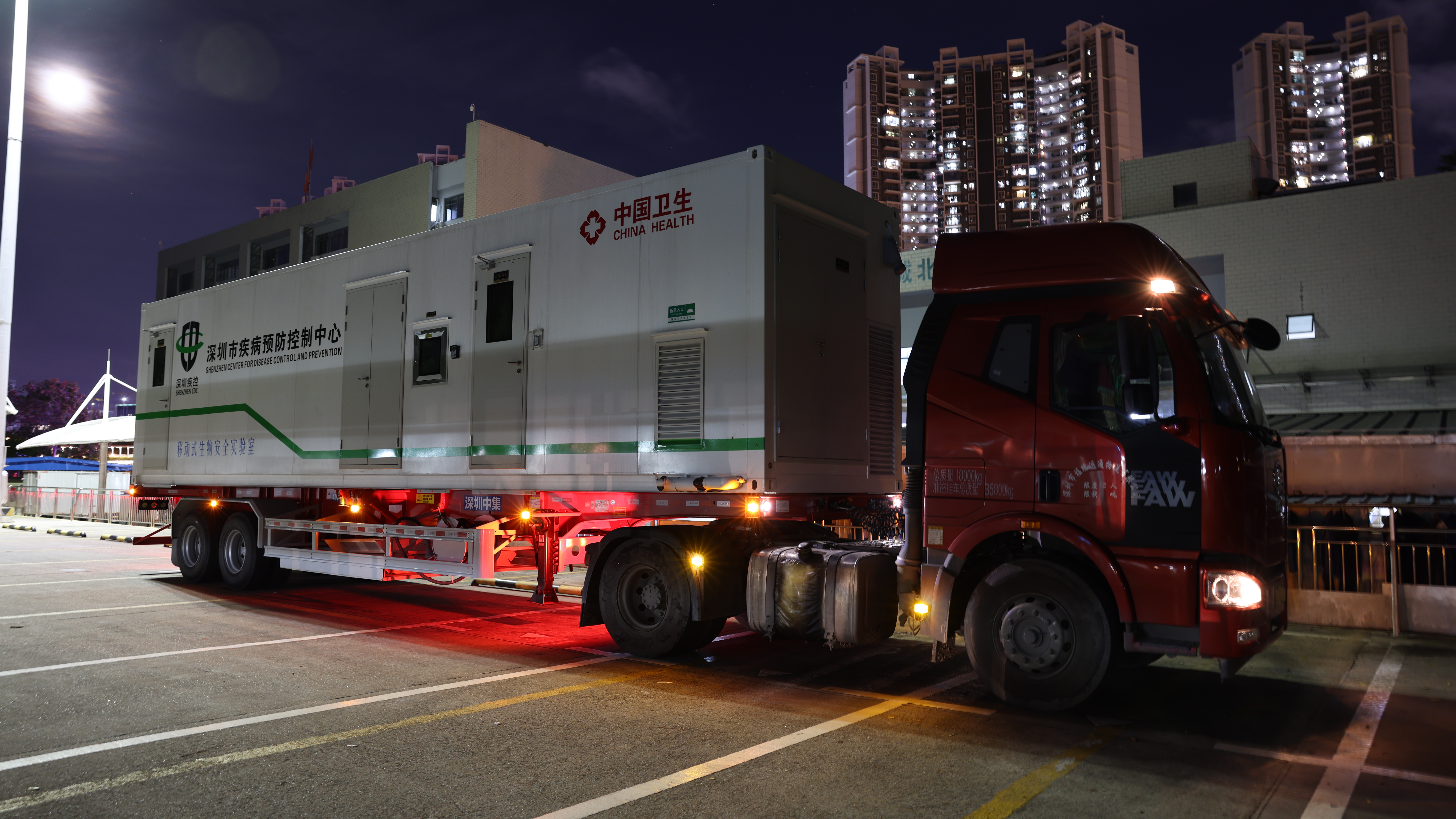5月26日下午5點,深圳市疾控中心接到深圳市疫情防控指揮部通知,緊急啟用移動式生物安全實驗室,迅速集結人員、物資,移動車輛,臨時水電,試劑耗材,設備調試,後勤保障等,為等候在僑城北公交綜合停車場的公交司機採樣核酸。