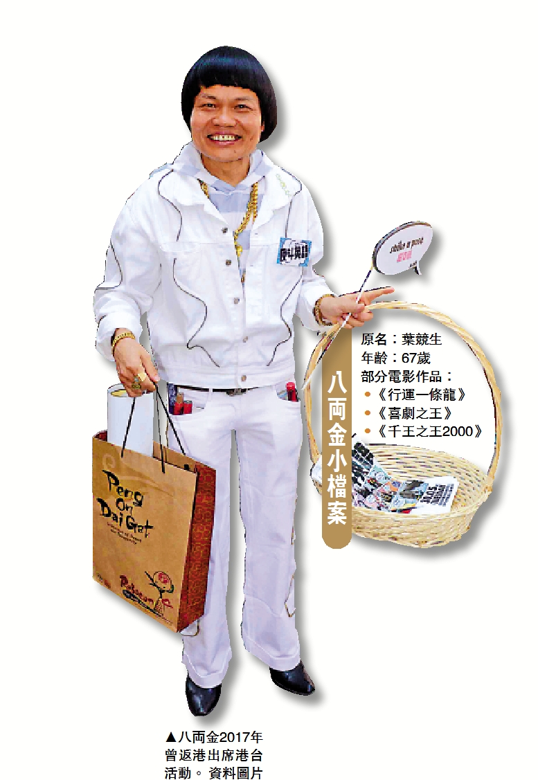 (大公報記者 文霏霏)相信看過周星馳電影的觀眾,對八両金都不會陌生。雖然他其貌不揚,但當加上獨特的口音以及滿身金鏈的造型,就甚有喜劇效果。二十世紀九十年代,八両金活躍香港電影界,是一位多產的喜劇演員,電影作品超過二十部。近年,他選擇到內地發展,主力從商,最近看準網絡發展的大趨勢,投資網紅生意,大展拳腳。