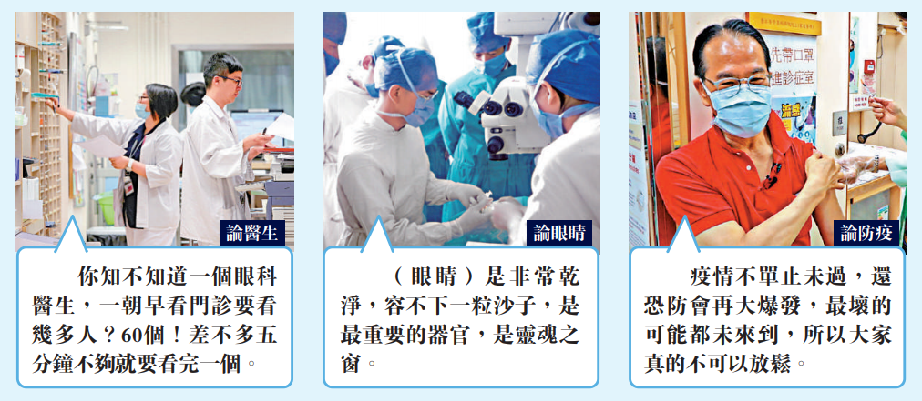 周伯展說,這些病例均令他深深感受到,為病人看診,不應只看對方雙眼,還要看「整個人」,才能察覺病人各方面的問題所在,對症下藥,「這才是一個醫生的工作嘛!」