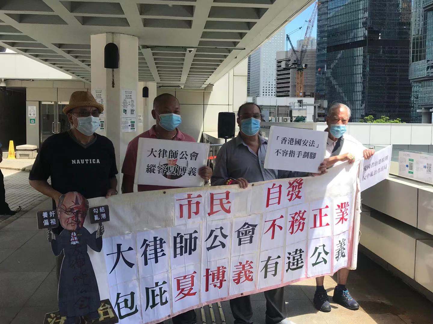 (大公文匯網記者 義昊)大律師公會包庇夏博義擾亂香港引發了市民的不滿。今日,有多個團體自發前往大律師公會外抗議,他們表示,如果大律師公會繼續包庇這等立場偏頗的人,將令公會淪為反中亂港平台,喪失專業,自取滅亡。