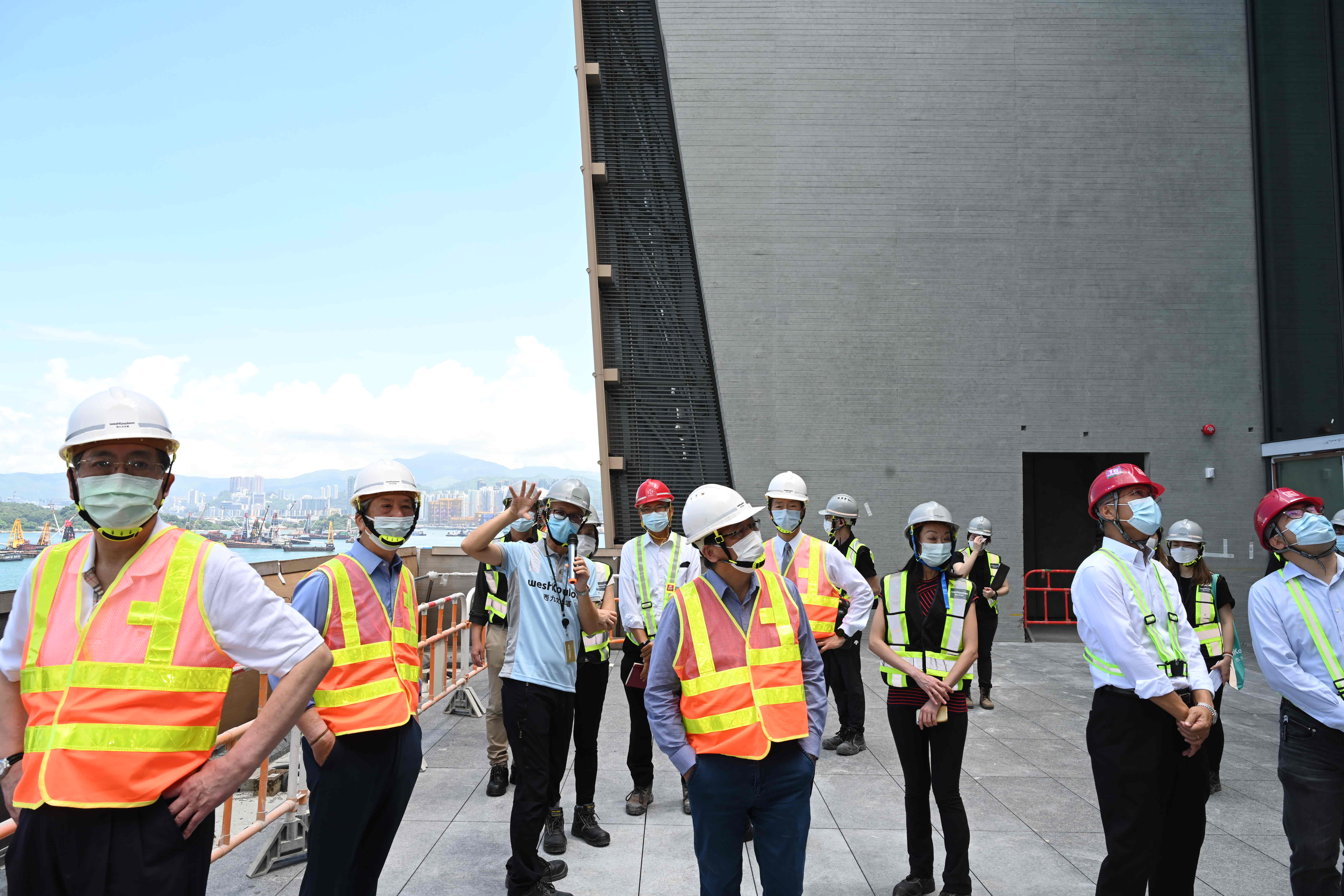 行會成員到達西九文化區,先聽取西九文化區管理局署理行政總裁馮程淑儀介紹西九文化區的設施。他們隨後在西九管理局董事局主席唐英年、馮程淑儀、M+博物館館長華安雅、香港故宮文化博物館館長吳志華、西九管理局表演藝術行政總監譚兆民陪同下,參觀M+博物館,了解M+大樓的設計和建築特色。M+博物館是亞洲首間全球當代視覺文化博物館,大樓建築工程已完成,現正進行內部裝修和安裝設備,包括安放布置M+藏品,預計今年年底開幕。
