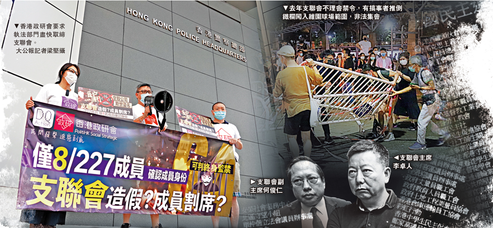 香港政研會批評支聯會是一個謀取眾籌資金的「空殼公司」,他們將去信執法部門,要求盡快取締支聯會。有政界人士認為,支聯會的政治綱領顛覆國家政權,已涉嫌違反憲法與國安法,促請執法部門跟進調查。