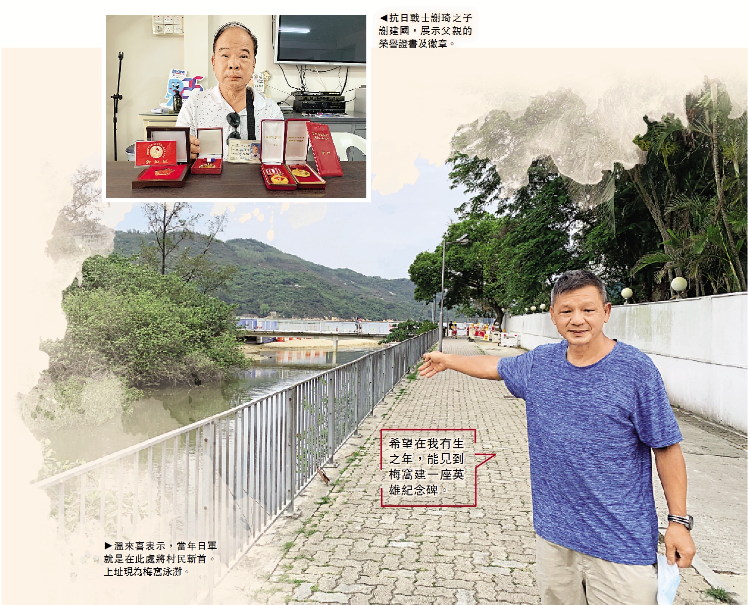 溫來喜也感嘆道,大嶼山的抗戰歷史鮮為人知,許多地方發生過的抗戰足跡已日漸湮沒,但抗日戰士為保家國拋頭顱灑熱血的事跡,與日軍的殘暴侵略的罪行,都應該讓年輕一代知道。「希望在我有生之年,能見到梅窩建一座英雄紀念碑。」