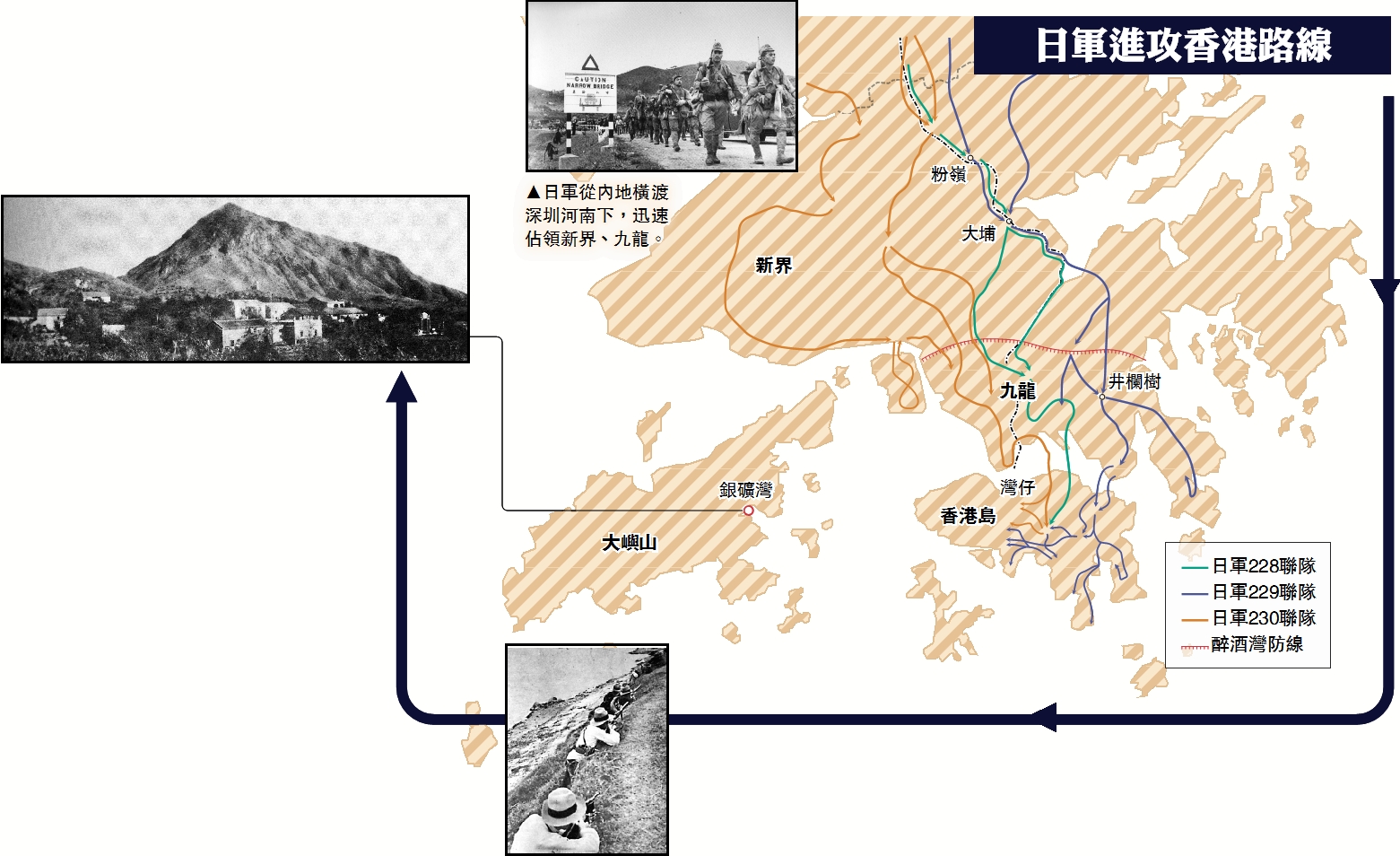 •1941年12月8日,日軍進攻香港,英軍只進行了十八天的抵抗,1941年12月25日,港督楊慕琦代表英國殖民地官員,向當時總部設於九龍半島酒店的日軍投降,香港全面淪陷,投降的那天被稱為「黑色聖誕日」。