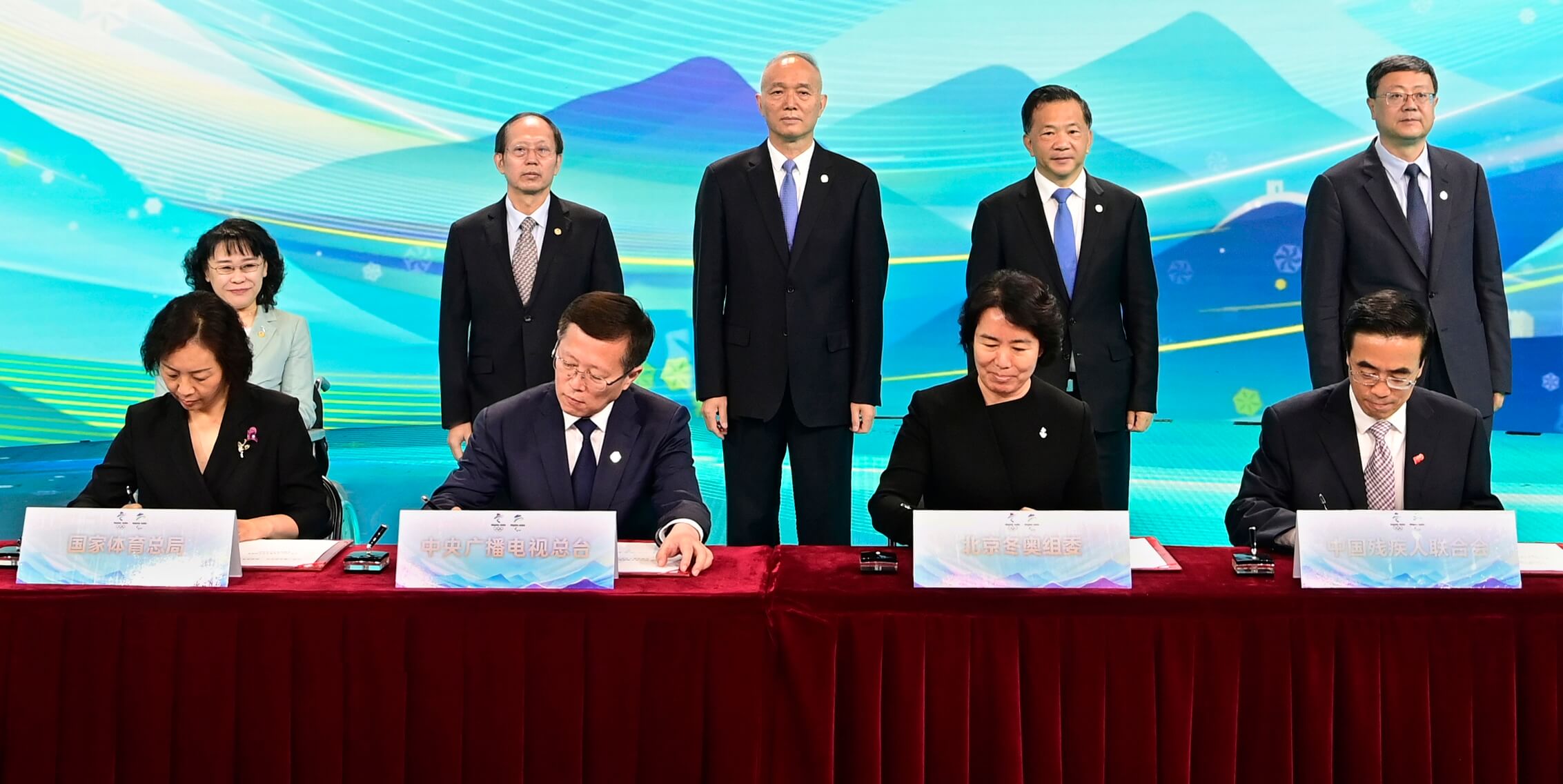 啟動儀式上,蔡奇和慎海雄、陳吉寧、苟仲文、張海迪等共同見證了《中央廣播電視總台北京2022年冬奧會和冬殘奧會全媒體宣傳合作協議》簽署,並與運動員、志願者和媒體代表一道,啟動「冬奧來了」全媒體行動。
