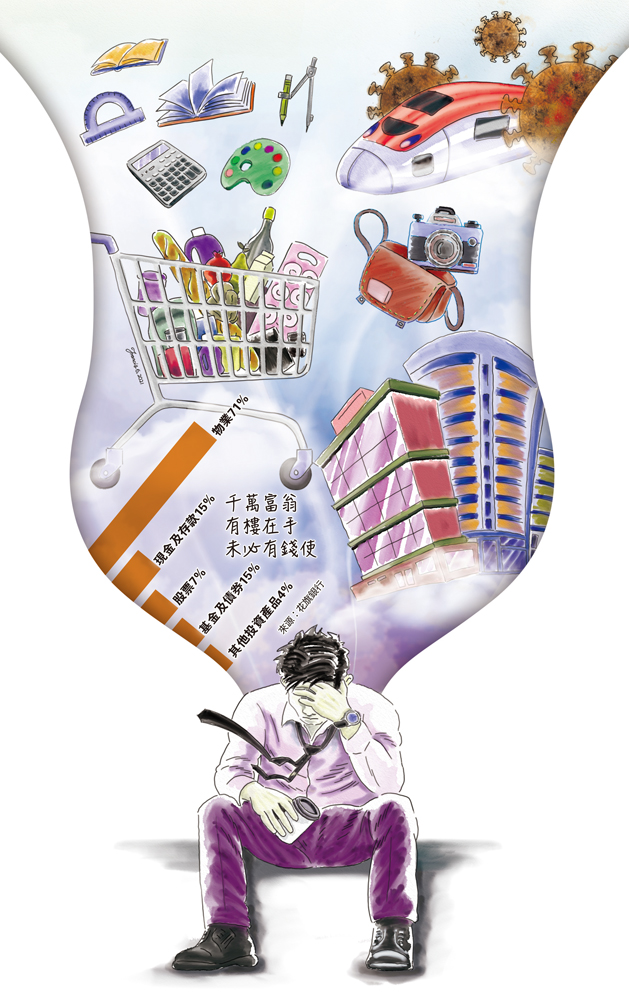 收入大增無望,支出又省無可省。有投行從業員因供樓及生活費等入不敷支,要靠借私人貸款度日;也有人為維持所謂「才俊」形象,置裝及應酬等開支巨大,選擇居於不足200呎的「蚊型」單位,有口難言;更有人擁千萬資產,但卻是物業為主,手頭流動資金緊張,要做省吃儉用的「窮富翁」。