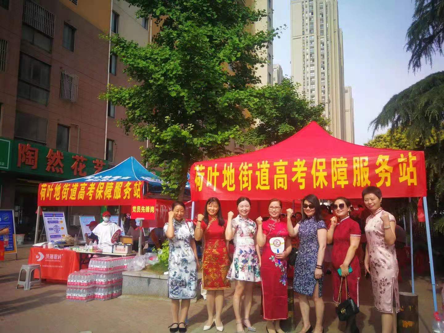 為了給考生提供周到的服務,學校也在校門口設置了黨員先鋒崗,為考生提供考試文具、防疫物品、洗手液、應急藥品等。「學校還在每個樓層設立了巡考人員,給考生提供諮詢等服務。請家長們放心、學生們安心。」合肥市五十中天鵝湖校區執行校長介紹道。「雖然很緊張,還是希望孩子能夠頂住壓力,考出一個理想的成績,所以我今天穿上了鮮艷的旗袍,預祝孩子能旗開得勝。」一些家長為了博一個好寓意,組團穿上了旗袍,成為人群中一道靚麗的風景線。