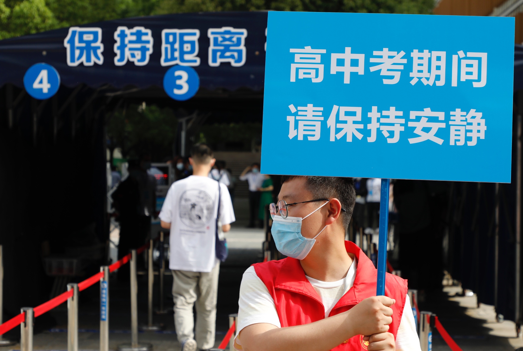 今年,合肥市五十中東校西園校區首次作為高考考點,學校做好了充分的準備。該校有關負責人介紹,學校高度重視考務工作,成立了考務組、防疫組、監控組等領導小組,落實落細各項任務,針對特殊考生,學校開闢了專門的通道,幫助考生完成考試。在校門外,轄區社居委已在門口兩邊搭起10個遮陽棚。「我們準備了防疫物品、鉛筆、橡皮擦等物品,給考生免費使用,還為等候的家長發放綠豆湯等防暑降溫用品,緩解他們的緊張。」現場一名工作人員表示,志願者除了做好現場引導之外,還為有需要幫助的考生提供接送服務。
