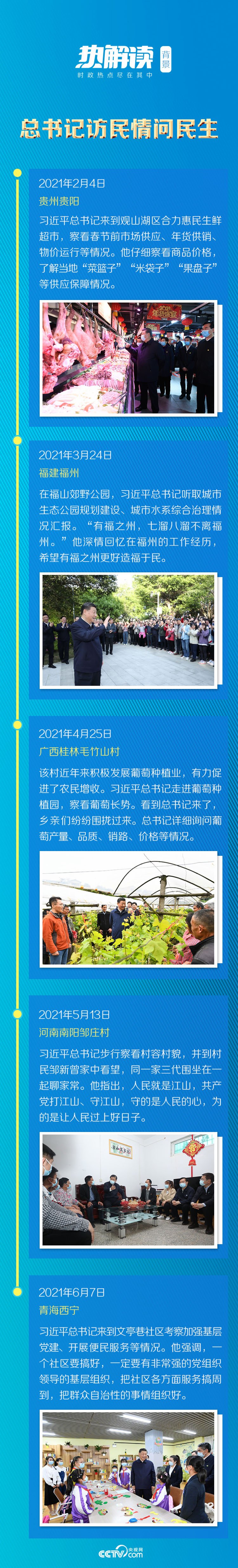 今年以來,總書記多次在地方考察期間走進社區、超市、村莊,探訪民生,為如何增進民生福祉指明方向。2月4日,他在貴州省貴陽市觀山湖區金陽街道金元社區考察調研時曾語重心長地說,要堅持為民服務宗旨,把城鄉社區組織和便民服務中心建設好,強化社區為民、便民、安民功能,做到居民有需求、社區有服務,讓社區成為居民最放心、最安心的港灣。