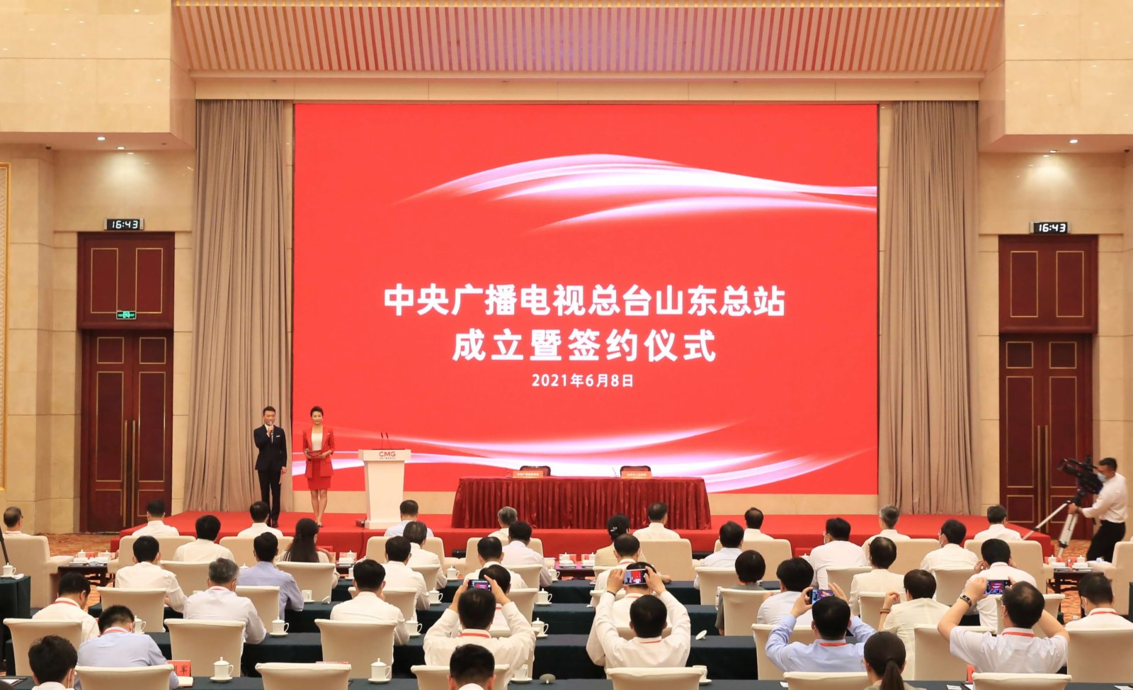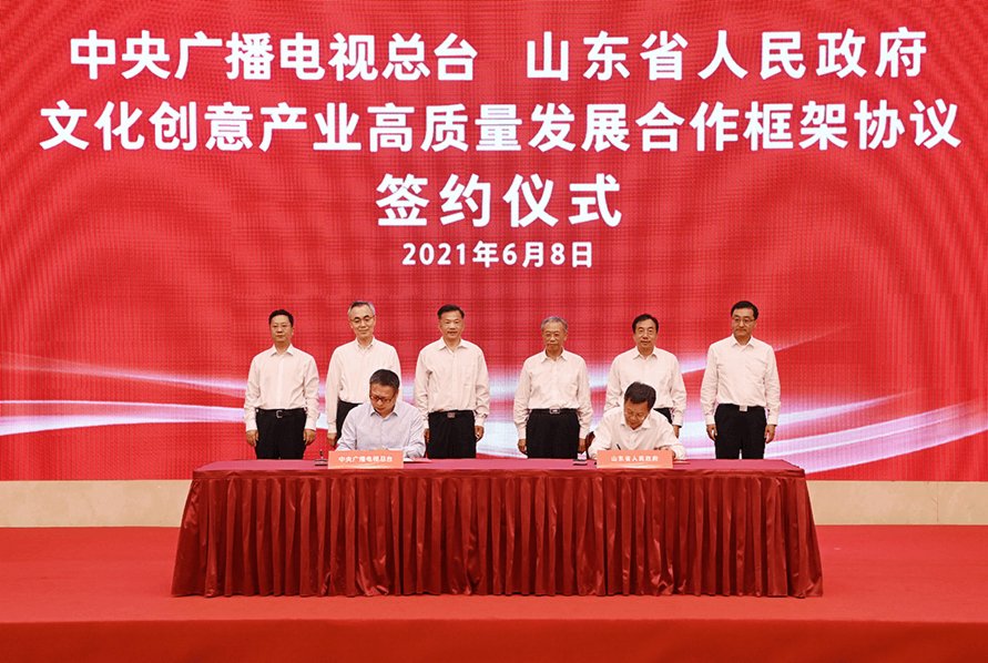 6月8日,中央廣播電視總台與山東省人民政府舉行文化創意產業高質量發展合作框架協議簽約儀式,中央廣播電視總台山東總站同日揭牌。