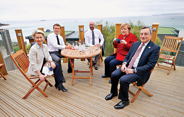 法國、德國、意大利和歐盟領導人前日開會,討論中國相關議題。此前稱對印太戰略需採取自主政策的法國總統馬克龍表示,與會領袖同意中國是「系統性對手」,是競爭者也是應對全球議題上的夥伴。德國總理默克爾則強調,G7希望在氣候變化等議題上,與包括中國在內的各國合作。她表示G7支持「基於多邊主義的價值觀」,或會在部分方面與中國和俄羅斯存在分歧。但在關鍵國際事務,尤其在應對氣候變化和生物多樣性議題上,如果將中國排除在外,各國便永遠無法找到解決方案。