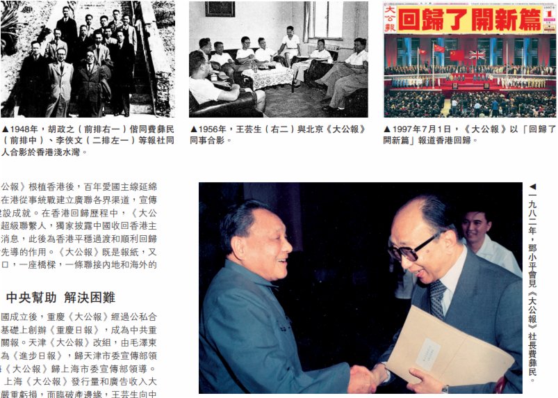 1982年初夏,鄧小平在會見《大公報》社長費彝民等港人時,第一次向香港各界人士提出1997年收回香港,但保持香港穩定,繼續發揮自由港作用的想法。當時他提出解決香港問題的著名八字方針:「恢復主權、保持繁榮」。《大公報》隨即披露了這一獨家新聞。
