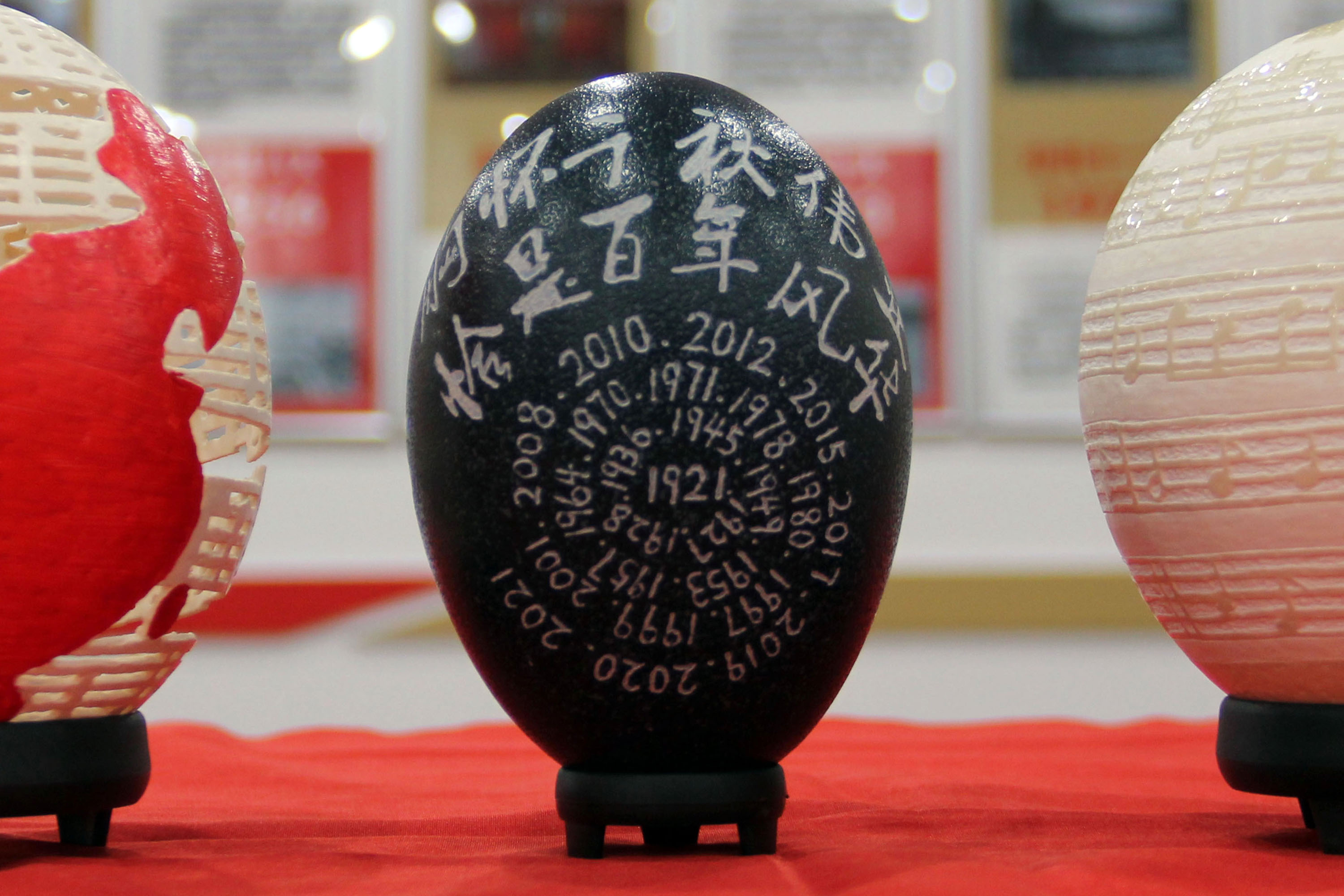 該組作品由鴯鶓蛋、鵝蛋、鴕鳥蛋等蛋殼雕刻而成。主作品正面刻有一艘「紅船」及「全心全意為人民服務」字樣,背後則有「胸懷千秋偉業,恰是百年風華」、1921——2021年輪圖案,以表達中國共產黨百年艱辛歷程。輕啟正面刻在一扇「窗戶」上的紅船,可見內嵌蛋殼寫有「初心」二字,寓意「不忘初心、牢記使命」。
