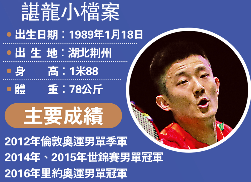 里約奧運男單決賽上,諶龍擊敗馬來西亞名將李宗偉,首次奪得奧運冠軍。原本以為諶龍將開啟屬於自己的時代,但里約奧運後,他卻突然陷入低谷。2017年世界錦標賽準決賽,諶龍兩局完敗給丹麥名將安賽龍,隨後的全運會更是意外地無緣4強。2018年,諶龍的狀態依然沒有大的起色,湯姆斯盃團體決賽被日本的桃田賢斗橫掃,下半年的世錦賽和亞運會上也沒有亮眼表現,世界排名一度跌出前十。