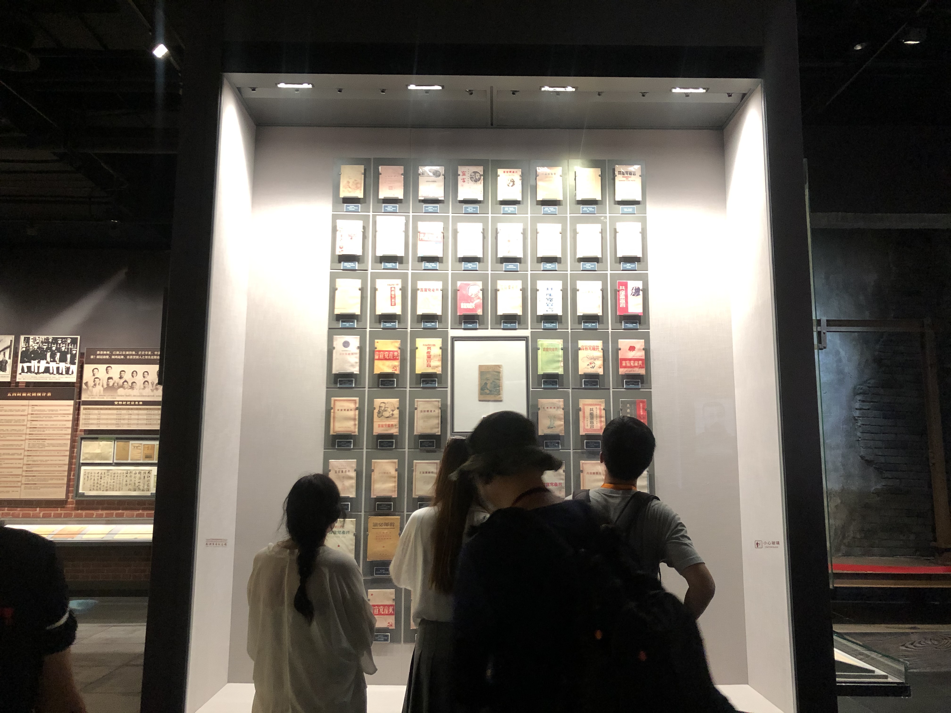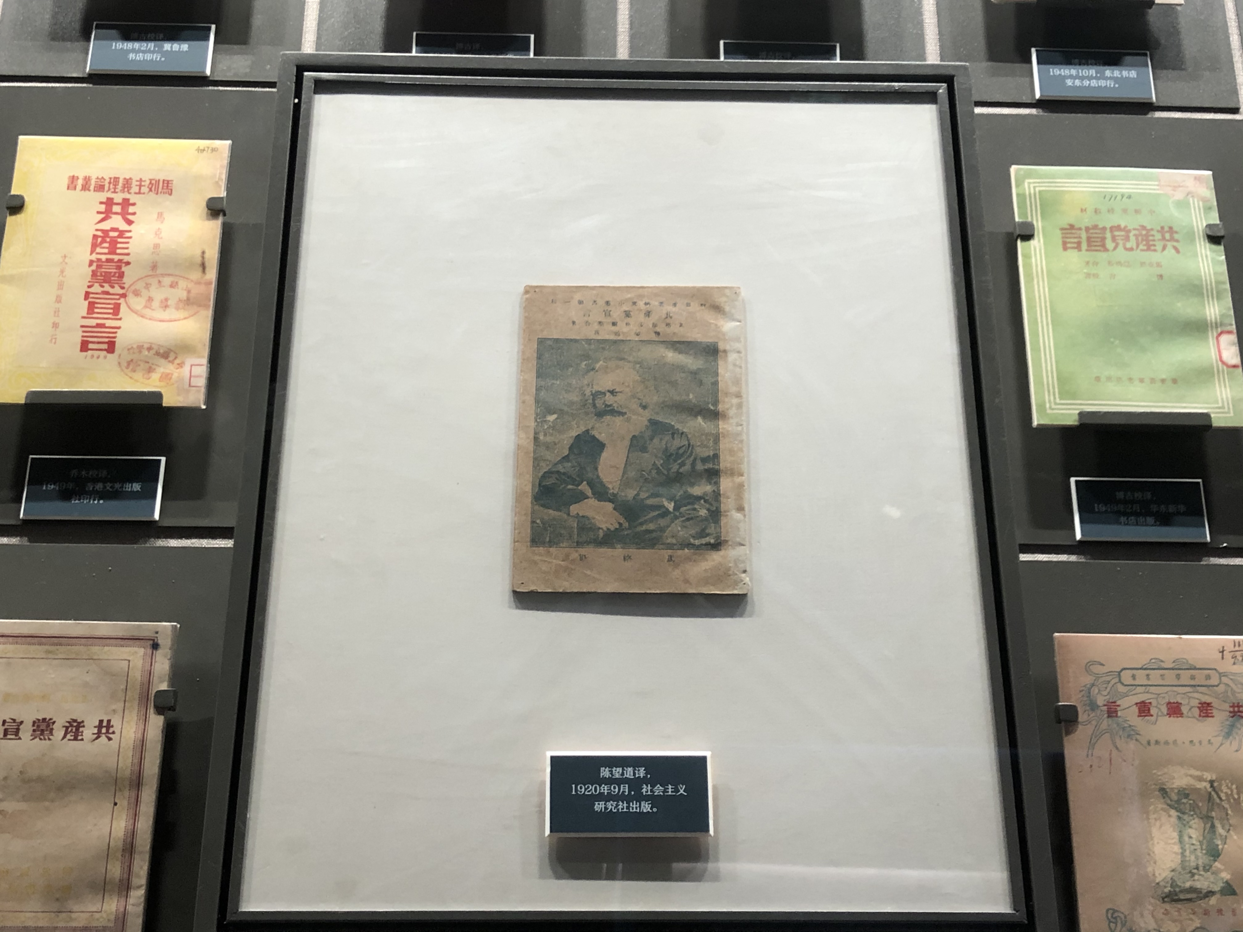 展廳一樓一面特殊的玻璃牆中,整齊地排列着60本不同時期、不同版本、不同語種的《共產黨宣言》,而正中間一本藍色封面略顯滄桑的《共產黨宣言》正是南湖革命紀念館的鎮館之寶,國家一級珍貴文物——由陳望道翻譯的《共產黨宣言》第一個中文譯本。李允表示:「《共產黨宣言》中文首譯本的發行標誌着馬克思主義在中國的廣泛傳播。目前得知還存世的僅有11本,所以是非常珍貴的文物。」