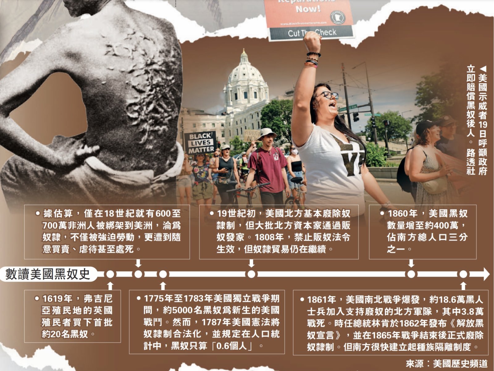 大公報綜合法新社、美聯社、美國Politico網站報道:美國總統拜登17日簽署法案,將被稱為「六月節」的6月19日黑奴解放日定為聯邦公共假日。然而,在清算蓄奴罪行、促進種族平等的實際行動方面,美國政府的低效一直廣受詬病。拜登也淡化立法支持賠償黑奴後人的可能,本月初,他私底下曾以議程過多為由,不表態支持有助於研究對賠償問題的法案,美國試圖洗白壓迫黑奴歷史的目的暴露無遺。