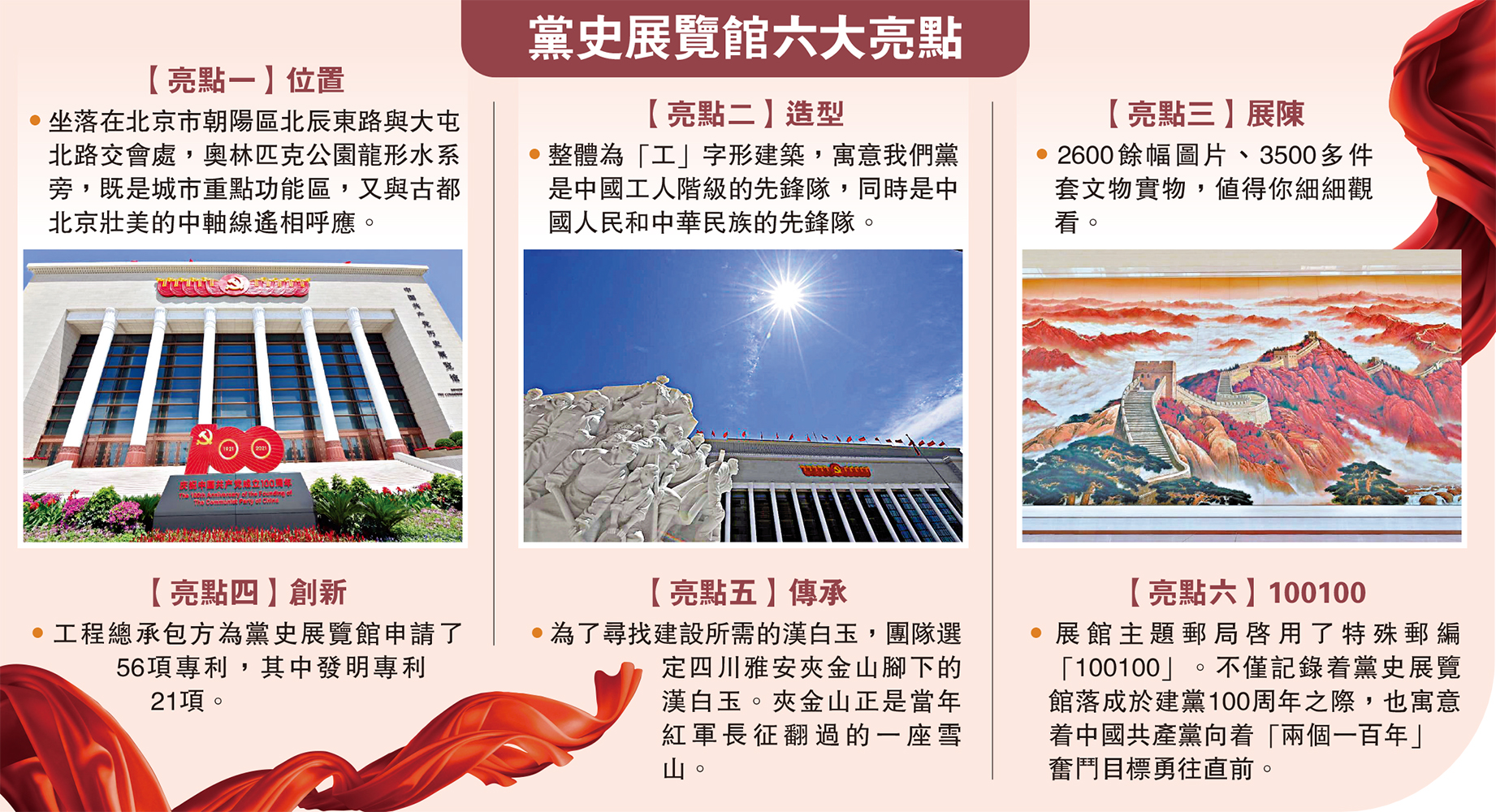 黨史展覽館六層紅色大廳內,燈光璀璨,莊嚴肅穆。