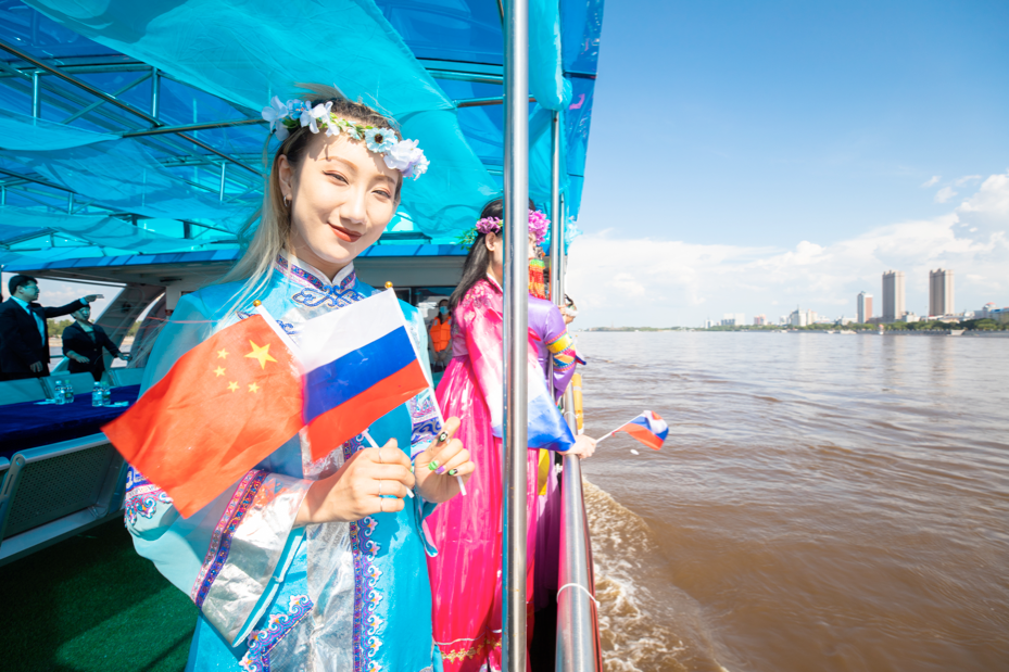 (大公文匯網 記者 于海江)21日,隨着中俄界江黑龍江江面的中俄雙方船隻同時鳴笛,以「中俄攜手謀發展,龍江兩岸共繁榮」為主題的第十一屆中俄文化大集盛裝啟幕,界江兩岸民眾隔江傳遞友誼,共同開啟中俄交流合作新紀元。
