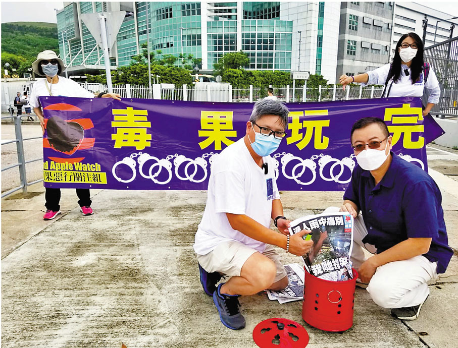 團體「蘋果惡行關注組」昨日到壹傳媒總部以「化寶」方式燒毀《蘋果日報》,以示香港社會最終戰勝毒媒體。團體代表表示,多年來,壹傳媒壞事做盡,杜撰假新聞、設立狗仔隊侵犯私隱等惡行罄竹難書,如今被市民唾棄、被法律追究,禍港26年的《蘋果日報》終於走到絕路盡頭,可謂咎由自取。