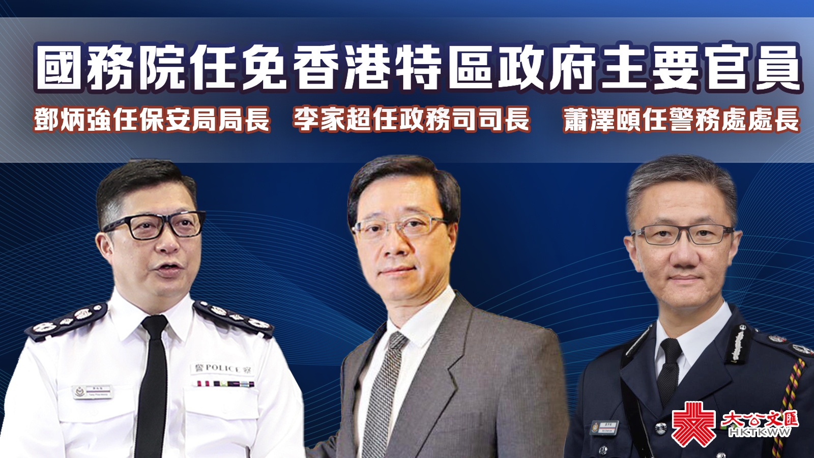 1.中央任命李家超為政務司司長 鄧炳強任保安局局長