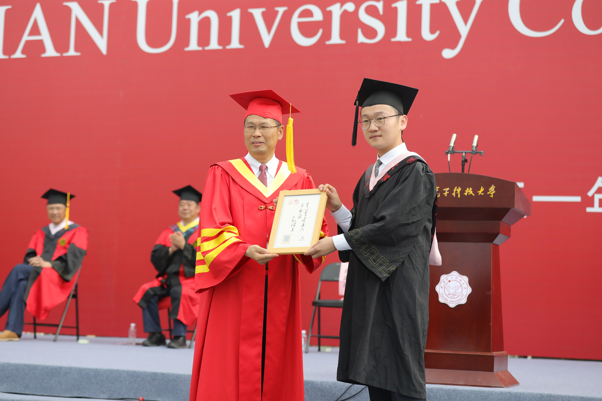 「你們這一代是見證、實現2050年中華民族偉大復興『關鍵一跳』的主力軍,這份沉甸甸的責任在你們每一個人的肩頭。」西安電子科技大學校長楊宗凱代表學校向順利完成學業的同學們表示祝賀。他希望畢業生們堅守愛黨為國、赤誠奉獻的西電烙印,奔赴更有高度的遠方;堅守心中有夢、腳踏實地的西電烙印,奔赴更有境界的遠方;堅守術業精深、開創引領的西電烙印,奔赴更有品味的遠方。「希望你們保持終身學習的姿態,時時磨礪這些能力,特別是立足精深的術業能力,奮力奔向國家最緊急、最緊迫的『卡脖子』關鍵問題,勇於揭榜挂帥,力爭在中國關鍵核心技術攻堅戰中有所作為,成為這個行業的領軍、先鋒。」