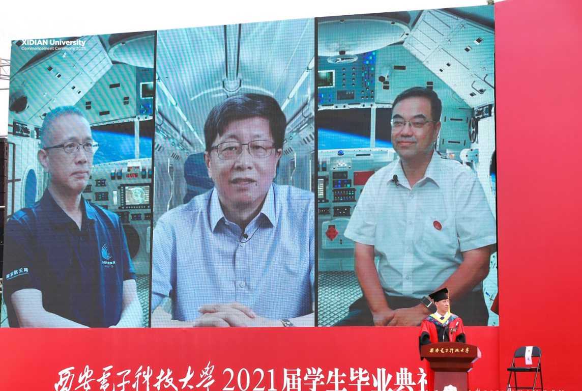 據了解,在西安電子科技大學2021屆畢業典禮上,中國科學院院士、中國航天科技集團公司科技委主任包為民,中國空間站系統總設計師楊宏和火星探測任務工程總設計師張榮橋三位西安電子科技大學航天總師校友,亦云端齊聚,向2021屆畢業生送上真摯祝福。他們寄語學弟學妹樹雄心、立大志,牢記建設航天強國的偉大使命,弘揚航天精神,利用好在西電學到的知識能力,為祖國作出更大貢獻。