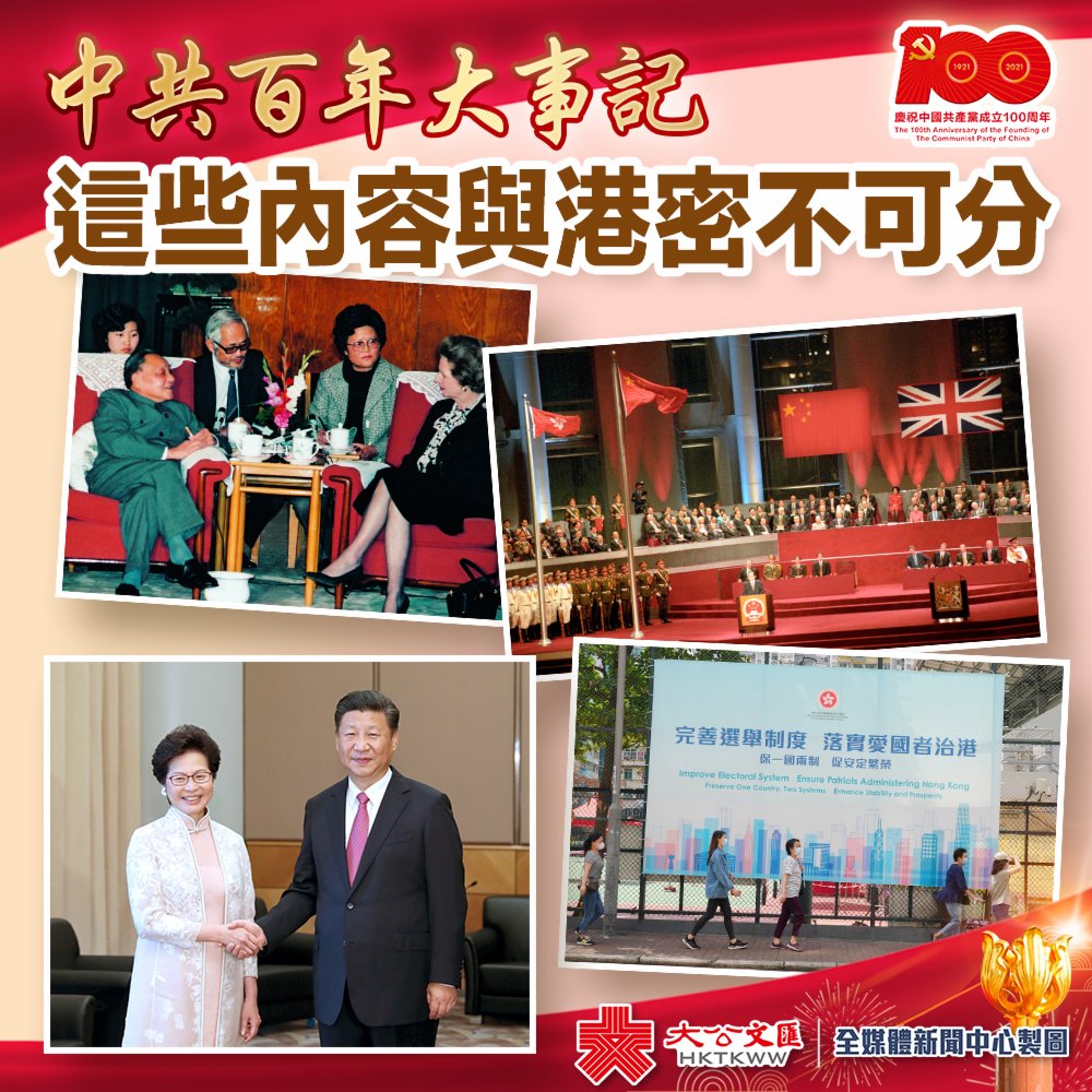 大公文匯全媒體報道,今年是中國共產黨成立100周年華誕,中央黨史和文獻研究院編寫了《中國共產黨一百年大事記》。《大事記》內容起始自1921年中國共產黨建黨,直至本月中國共產黨歷史展覽館開館,全文共十萬餘字。香港與中國共產黨的關係源遠流長,大公文匯全媒體記者為您整理了中國共產黨一百年來與香港有關的內容,快來學習下!