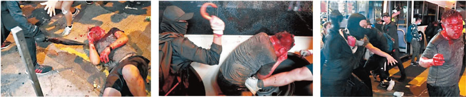 「那時我根本不知他們在做什麼,但他們搶了我手機,那是我的個人財物,當然不允許,便把手機搶回來。」楊先生說,暴徒搶手機時,他開口理論,因而暴露了其內地旅客的身份,街上所有黑暴分子頓時狂性大發,「他們知道我是內地人後便一擁而上……」用傘、鐵鈎和磚頭不斷襲擊,他四處躲避卻無人伸出援手,毫無還手之力的他被打致昏倒。