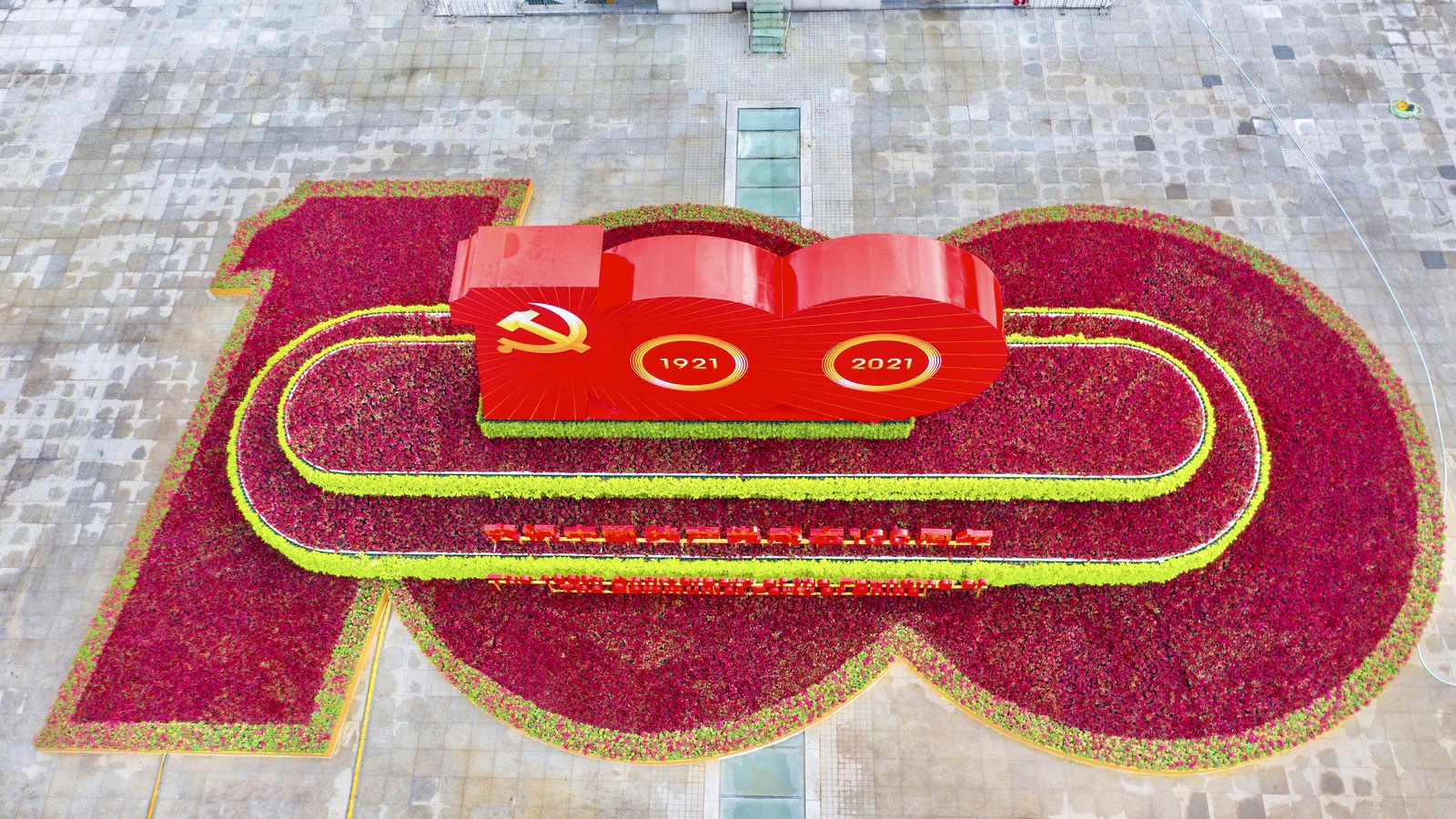據深圳市公園管理中心園容園藝部部長文波介紹,市民中心的花雕景觀佔地面積800平米,高10米,採用精細的拚接工藝,整體壯觀精美,背靠市民中心大鵬展翅,回顧建黨百年歷程;面朝深南大道,砥礪前行展望未來。創新採用聲光電一體化設計,立面及頂面均以100周年的標識形象呈現,各個角度充分體現宏偉莊嚴的效果,營造節日慶典的氛圍。五星花、百日草、千日紅、紅穗冠等植物以正紅色為主色調營造整體造型為「100」的花卉景觀,並以橙色的百日草、鳥尾花等給「100」鑲上金邊,金葉薯、腎蕨、鴨趾草等立體綠化植物塑造了飄帶的形象,表達對黨的美好祝福。